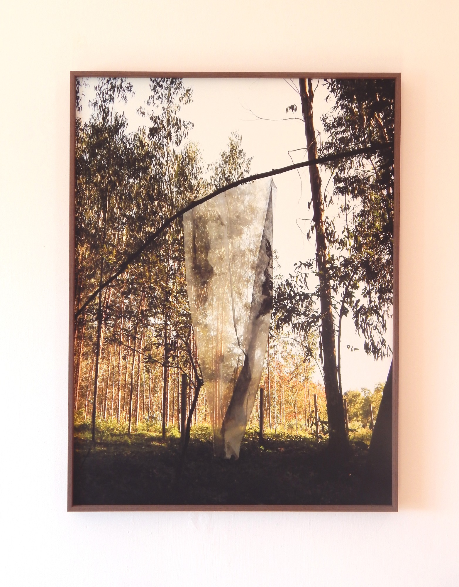 “Janela” (2019-2020) is a project conceived in the context of the artistic residency GRÃO (Albergaria-a-Velha), which took place between October and November of the year 2019. In "Janela#1", a transparent fabric painted with indian ink and gold leaf was installed on a tree, in a border location (among types of vegetation) in which the light integrates the composition.