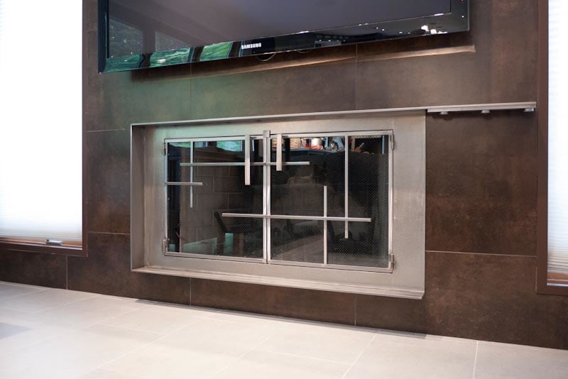 Custom fireplace doors and sculptural treatment. Hand crafted from cold rolled steel. Each design is one of a kind and tailored to your space and needs. Please visit our website to see additional designs. https://www.girardinidesign.com/custom-fp
