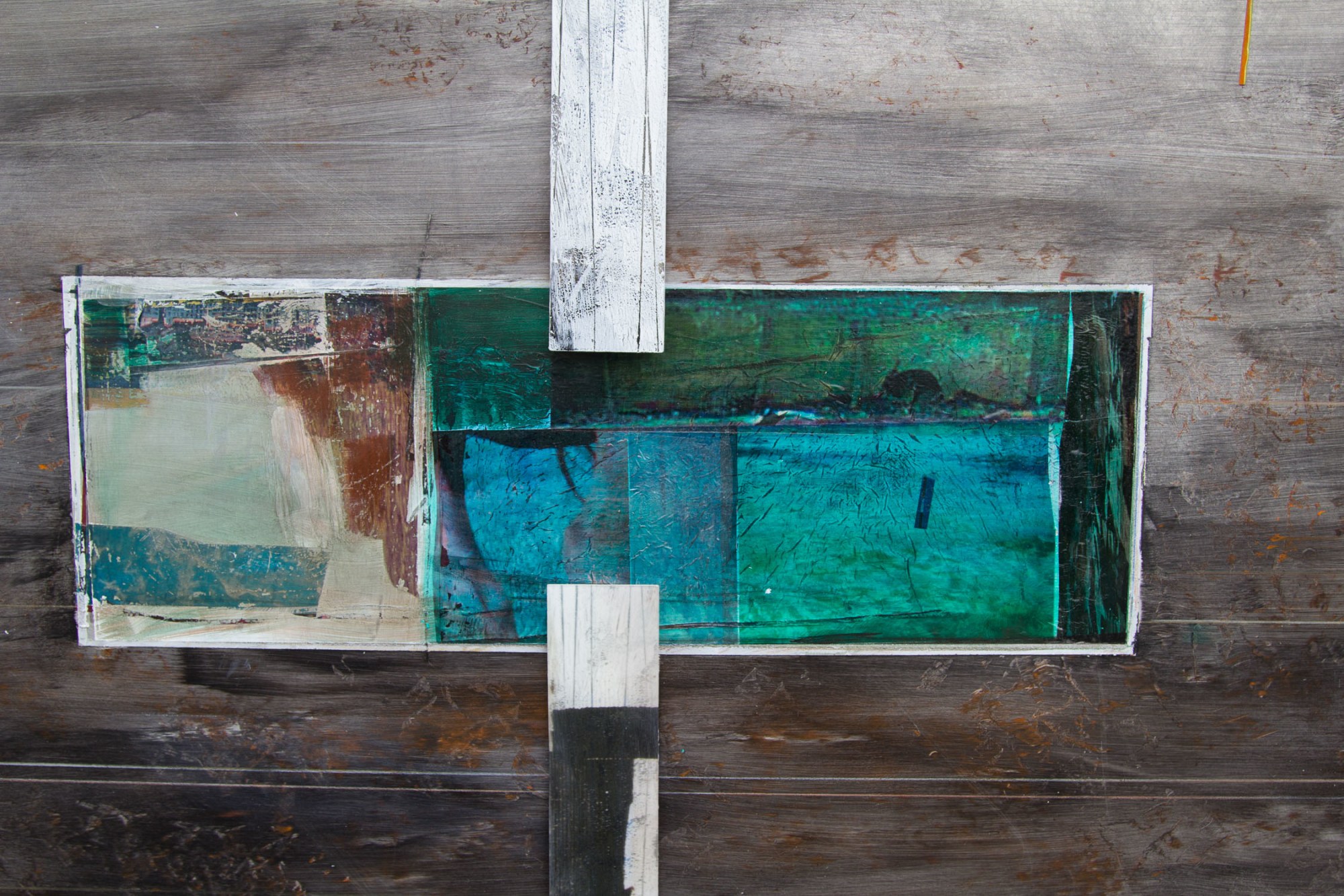 48" x 36" Image transfer and pigments on aluminum with sculptural steel and polycarbonate structure.