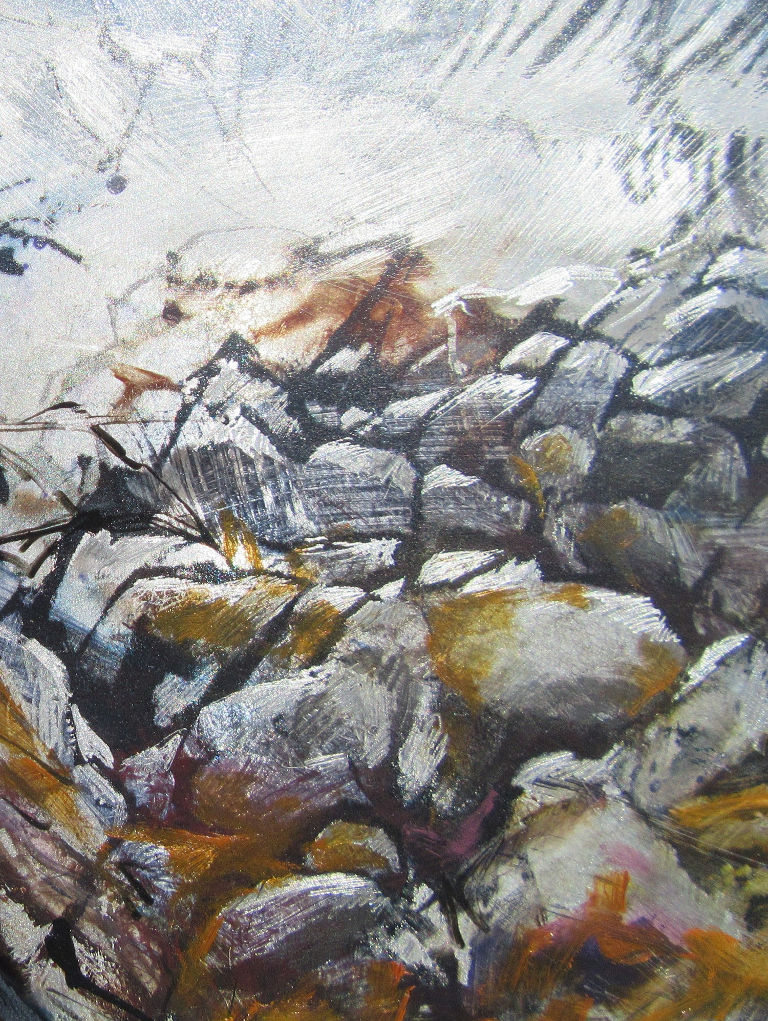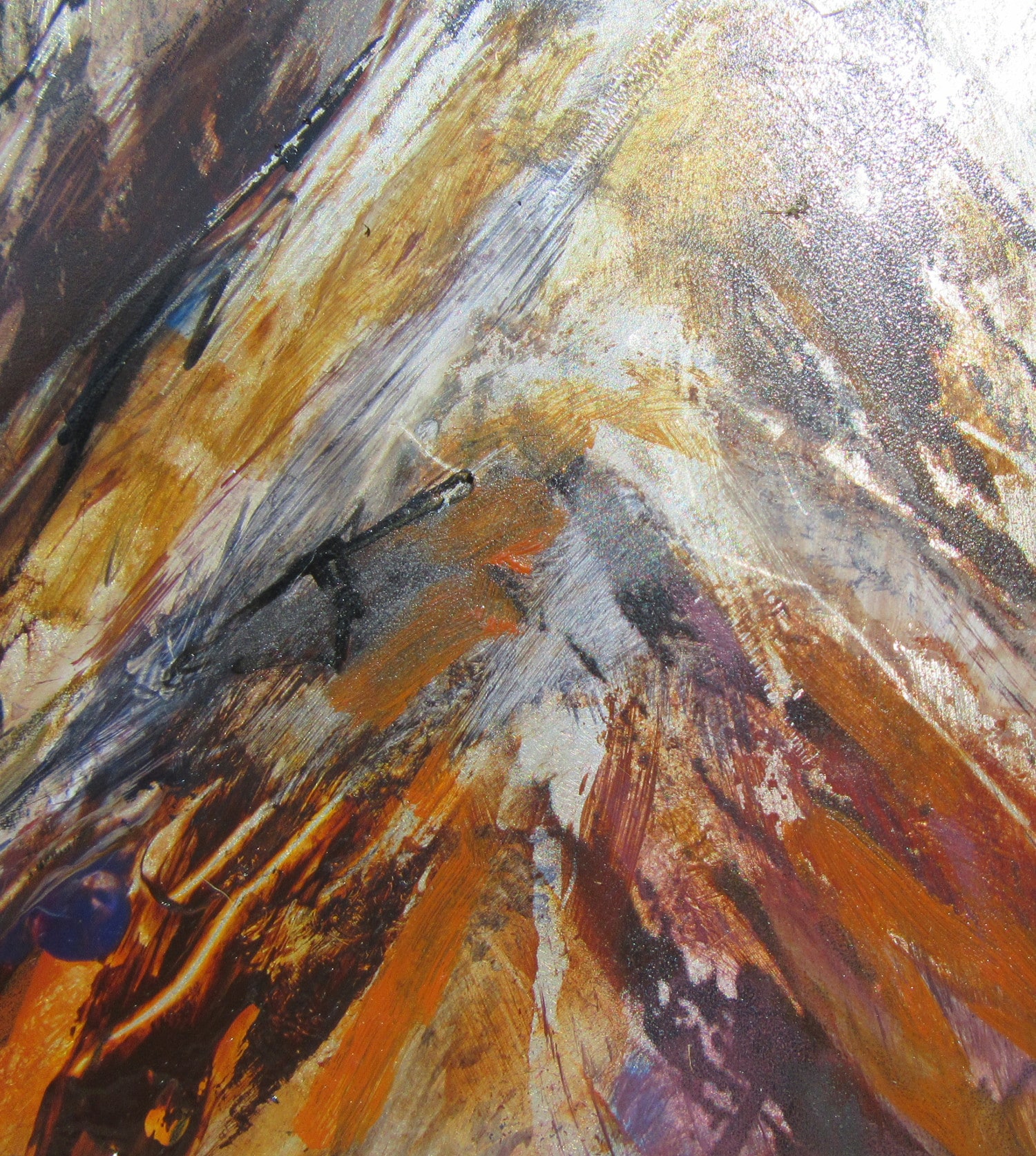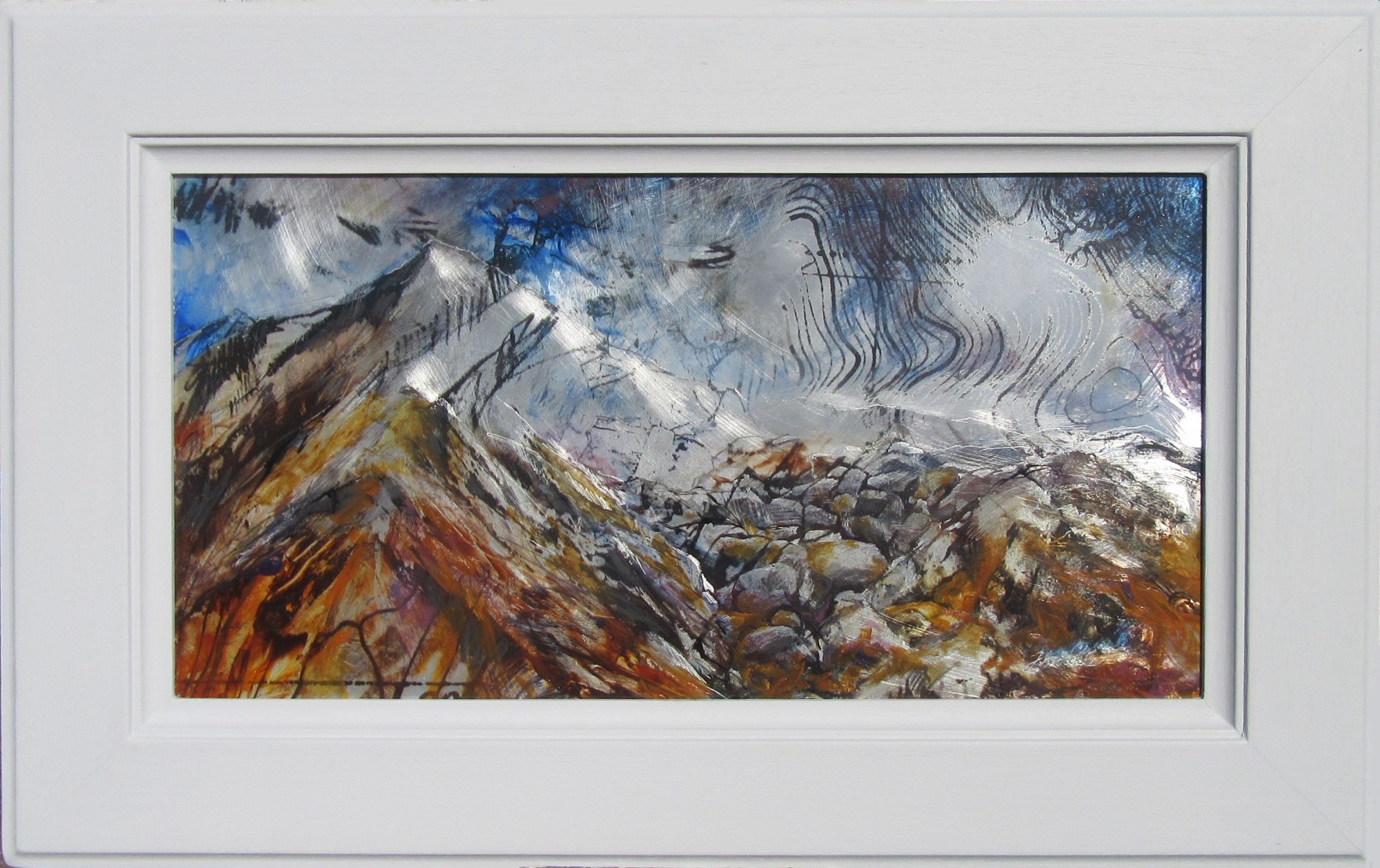 Landscape painter working in oils and mixed media : semi-abstract, working on metal and using maps and sketches in unique ways.