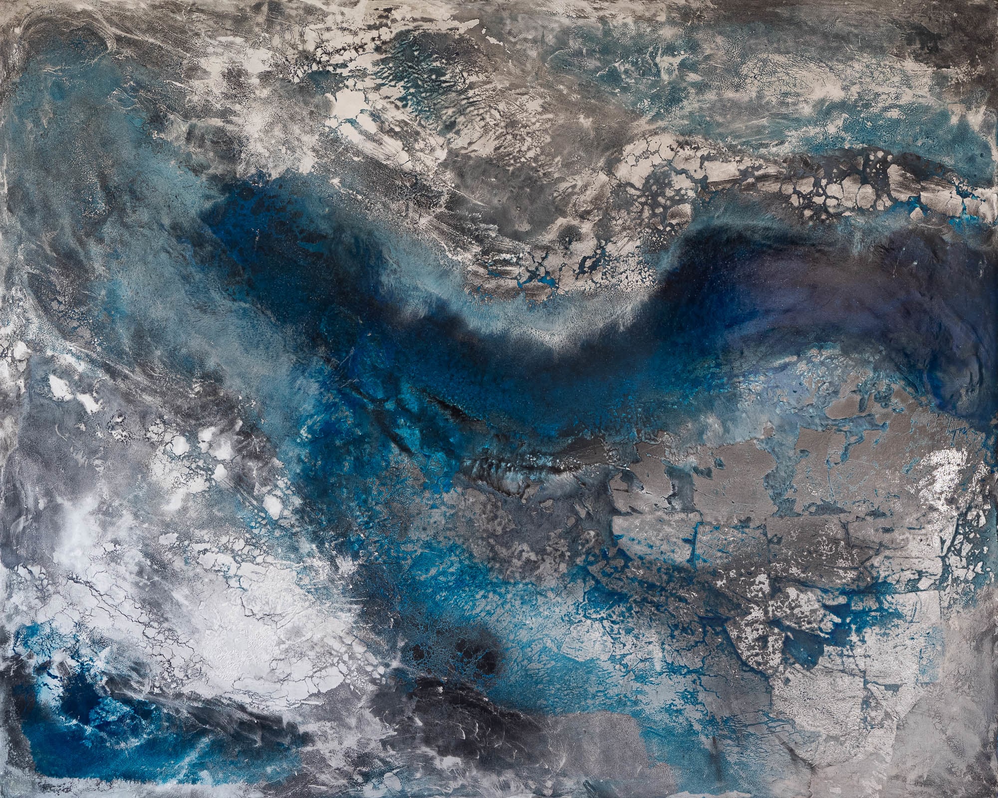 Encaustic, metal flake, Aluminum Leaf, and graphite on panel