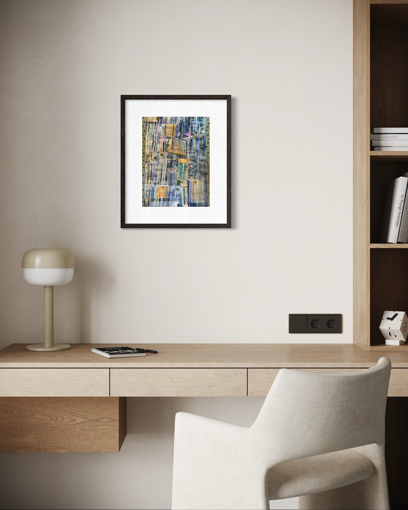 In this work, colors speak before shapes do. Layers drift downward like memories softened by time, while bold lines rise through the calm as if insisting to be heard. There is a quiet pulse beneath the surface, a dialogue between hues, a negotiation between harmony and disruption. It is a portrait of contrast, of tension that doesn't fracture but instead forms its own kind of grace.