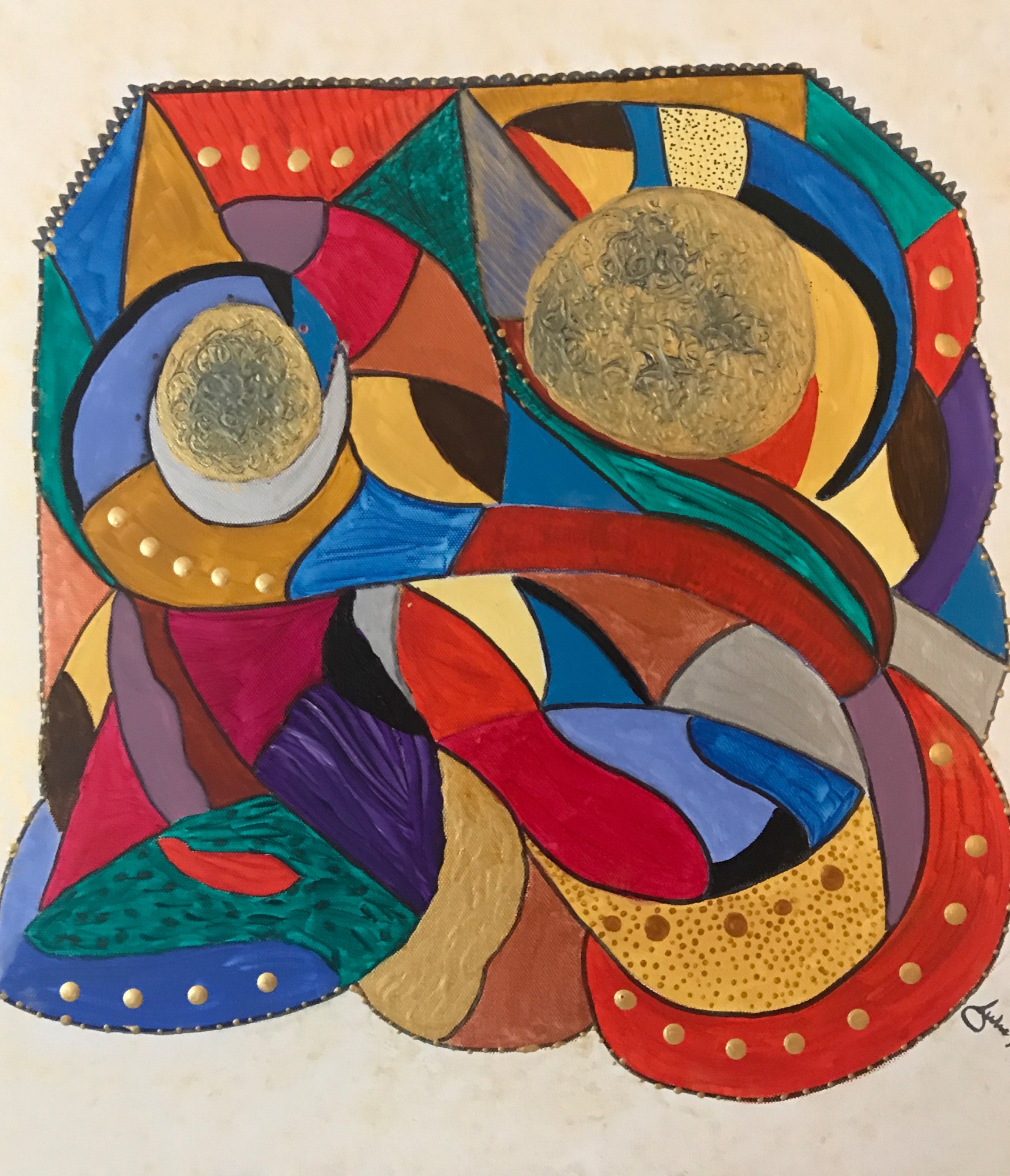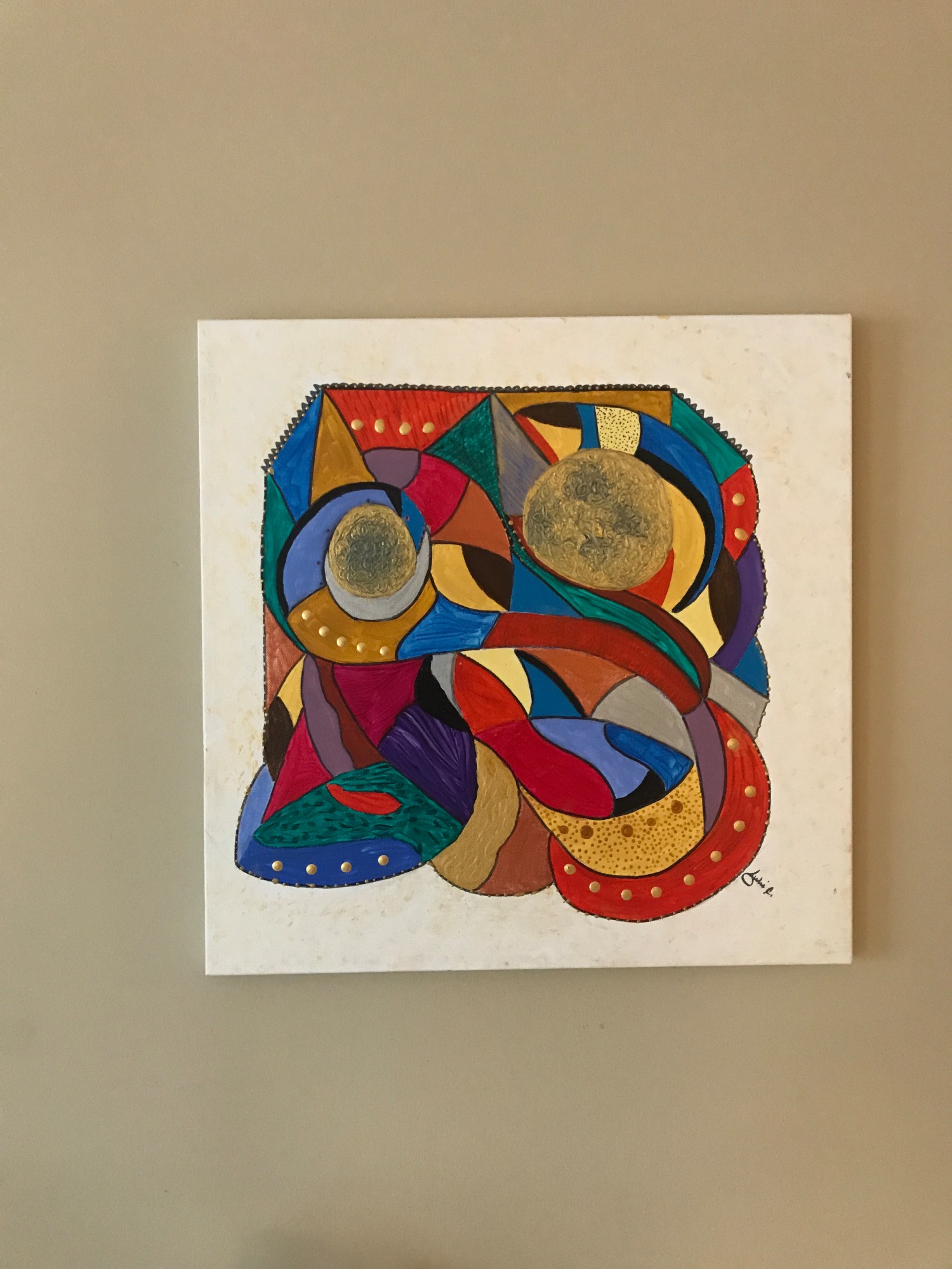 Bright and colorful abstract will add a pop of color to any area. Unframed.