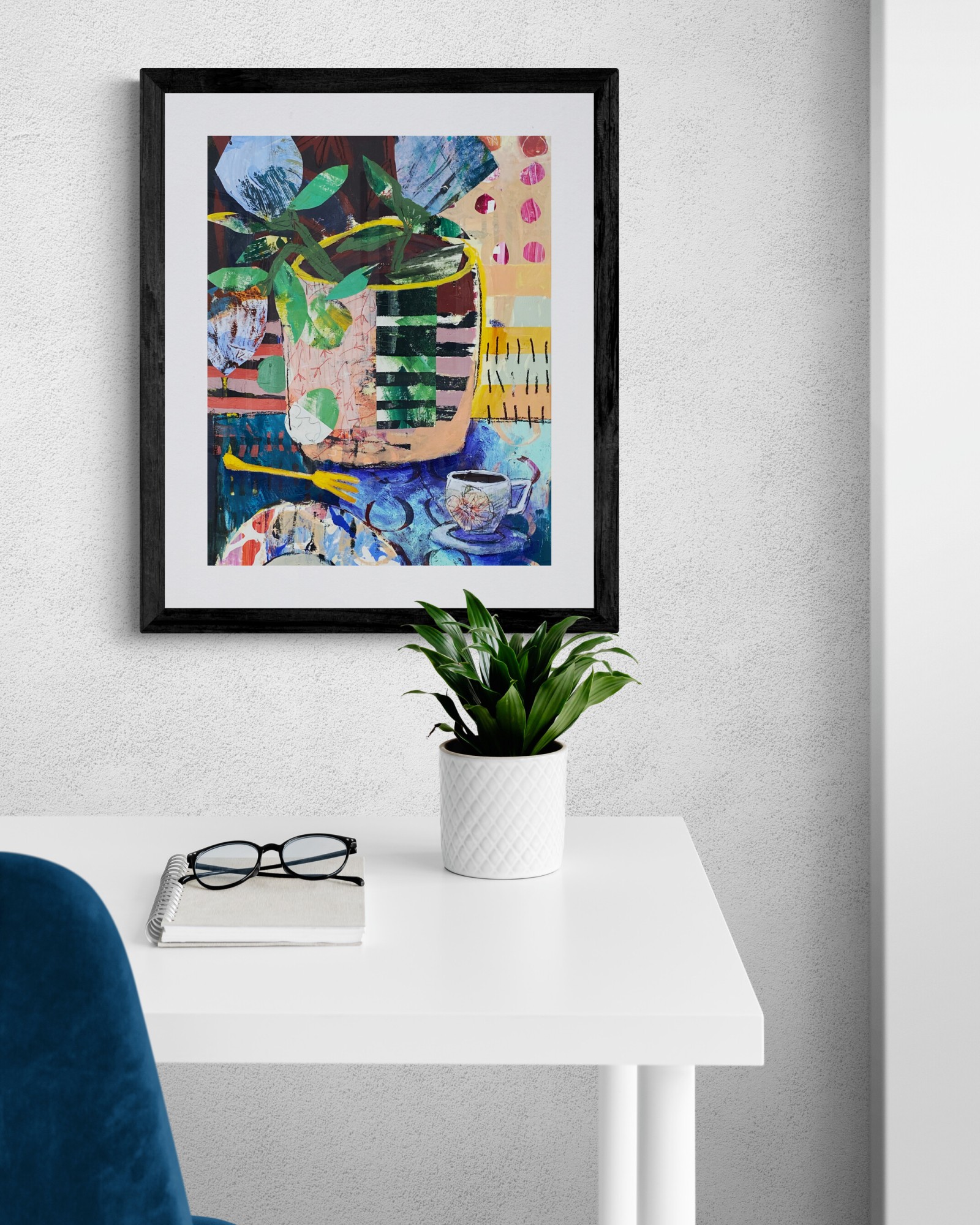 I am a printmaker + painter + collage artist. My artwork focuses on juxtapositions.
