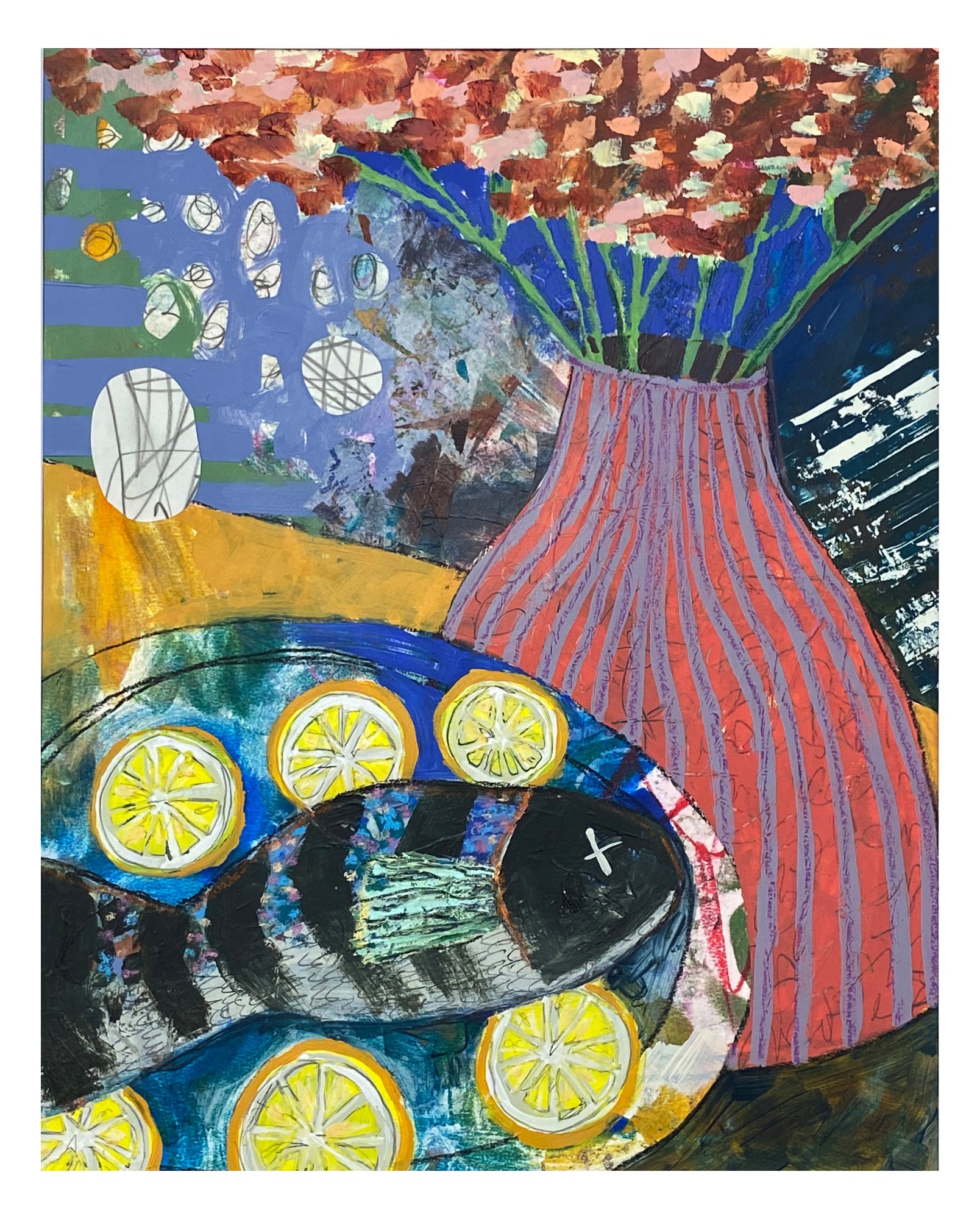 Acrylic, Oil Pastel, Collage Paper, Pencil