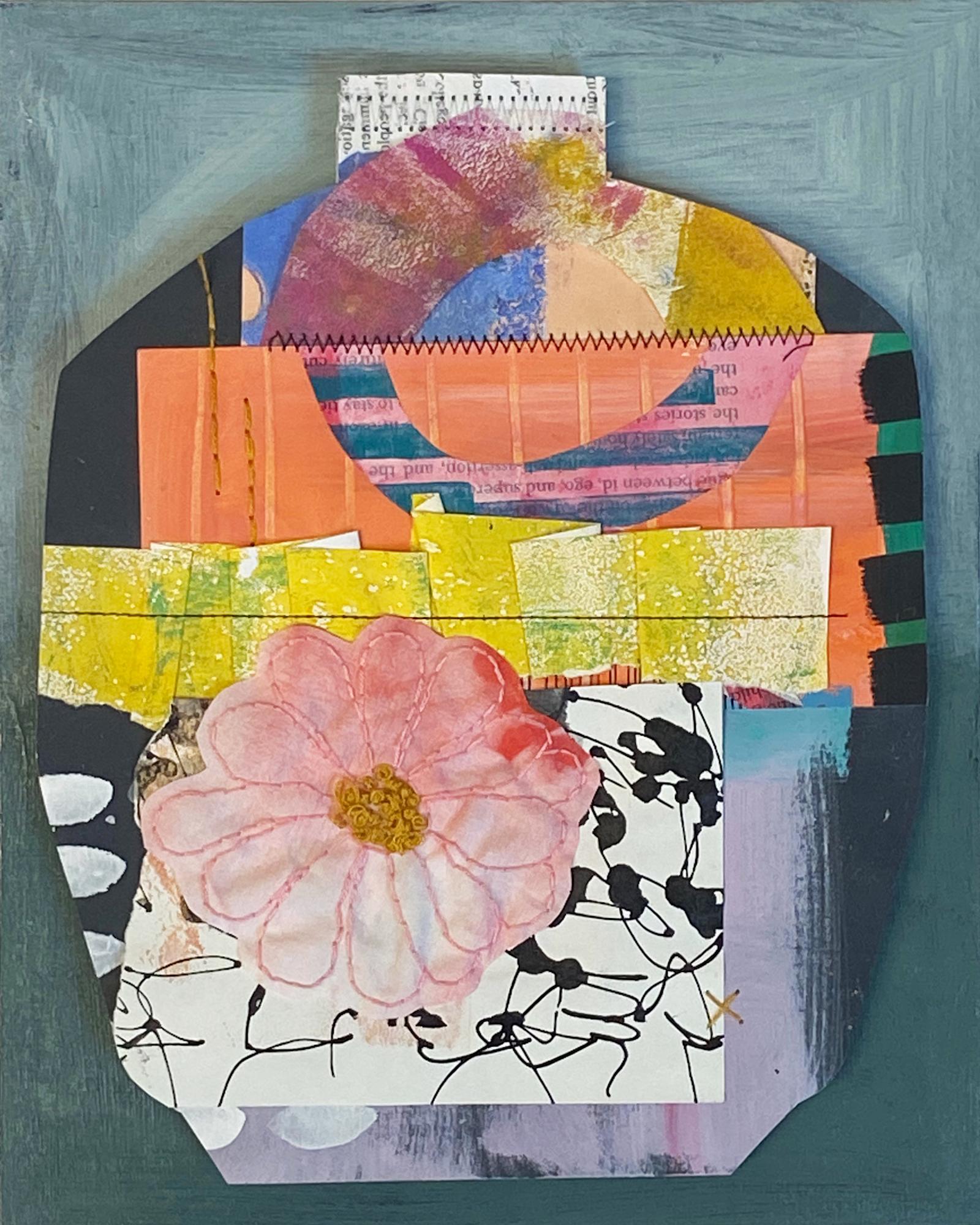 Acrylic, Collage, Fabric, Stitch, Crayon