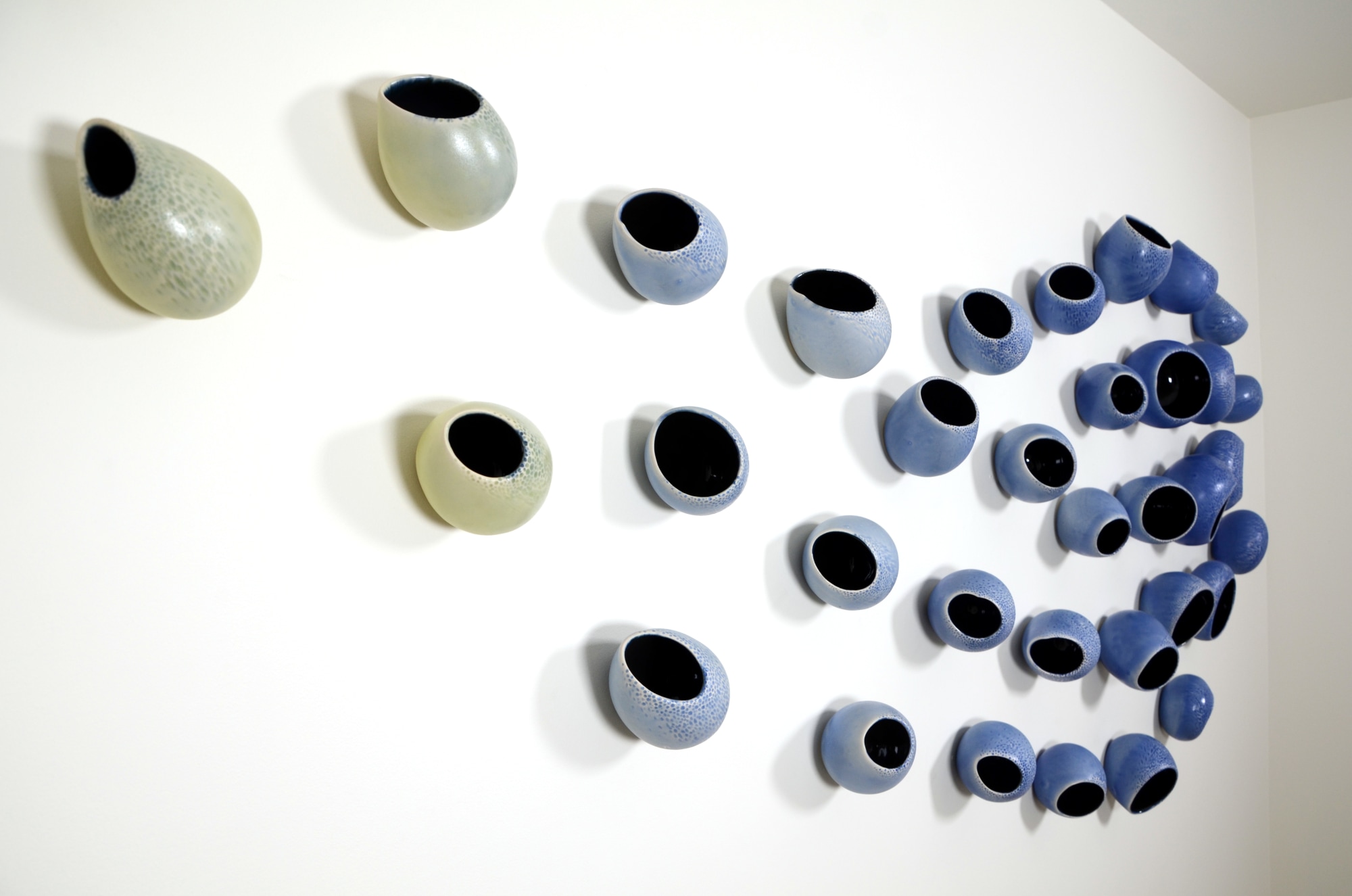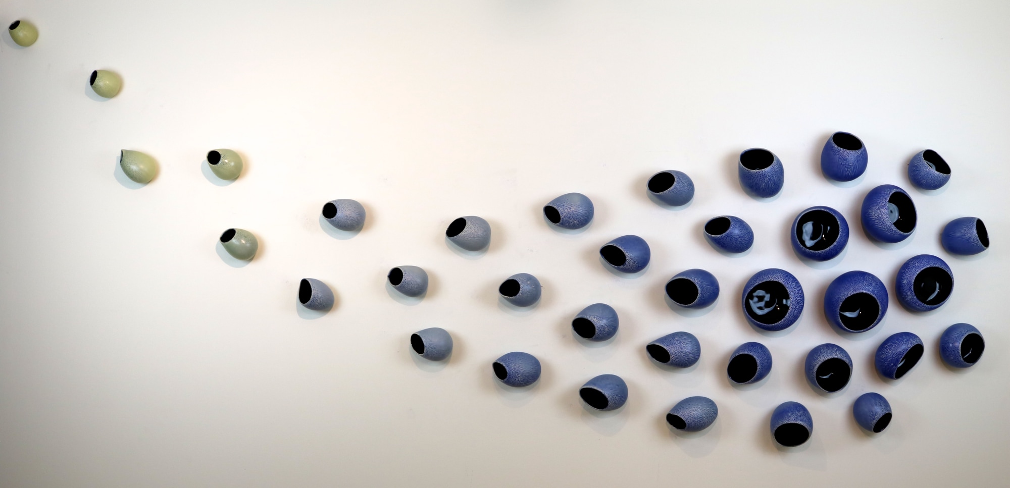 36 Part wall-hanging ceramic sculpture, includes full-scale template with drilling pattern for ease of installation
