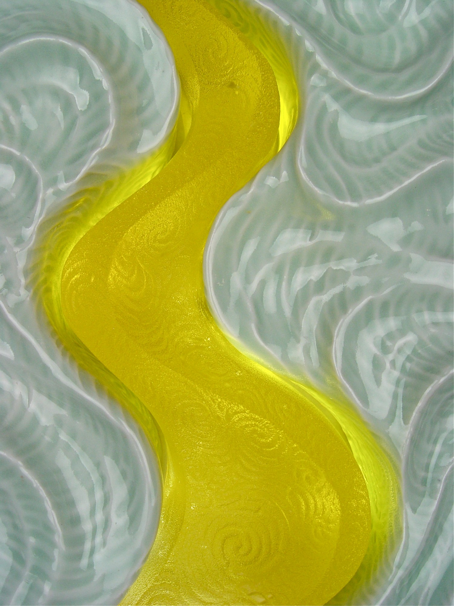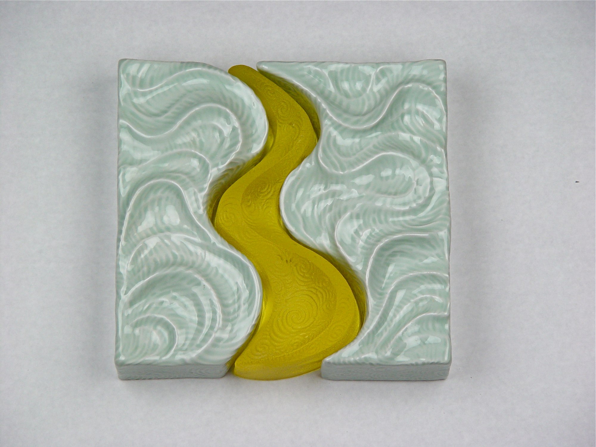 Hand-built porcelain with kiln cast yellow lead crystal glass - Collaborative piece created with Gregory Grasso
