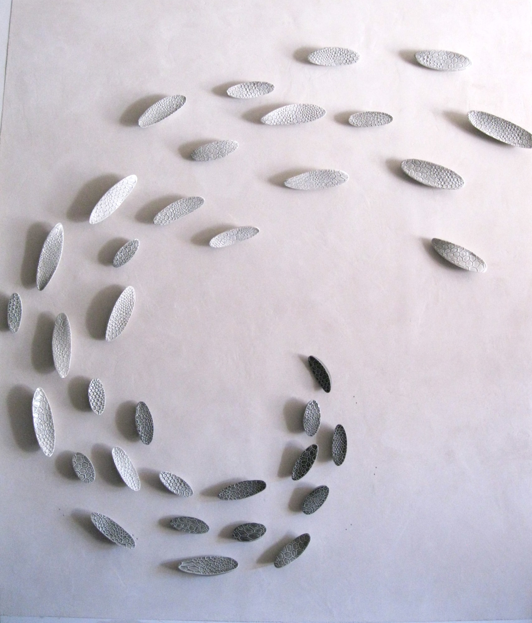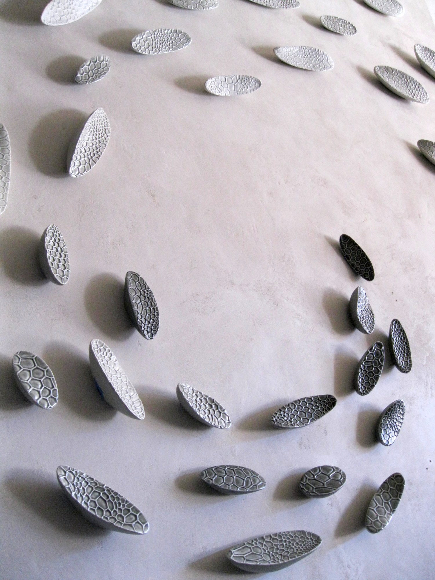 36-part wall-hanging hand-built ceramic sculpture