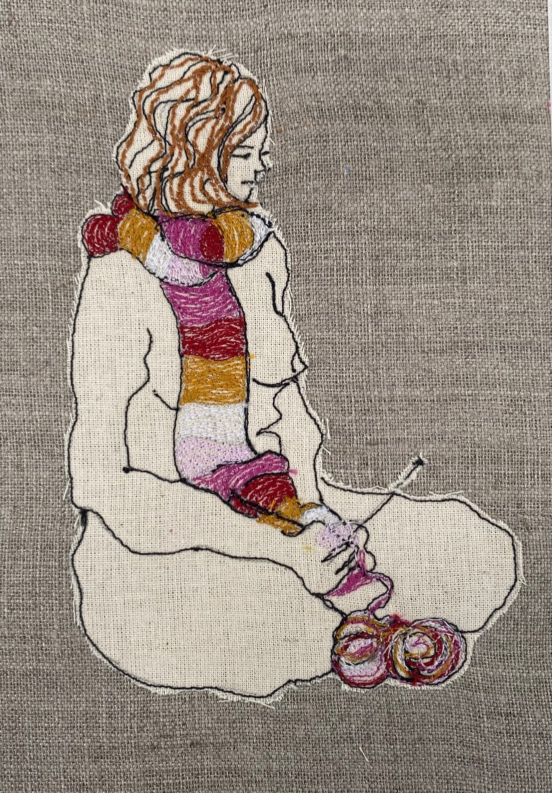 AN EXQUISITE LITTLE EMBROIDERED ARTWORK, DEVELOPED DIRECTLY FROM A LIFE DRAWING AND INDIVIDUALLY HANDMADE FROM THREAD USING FREEHAND MACHINE EMBROIDERY.