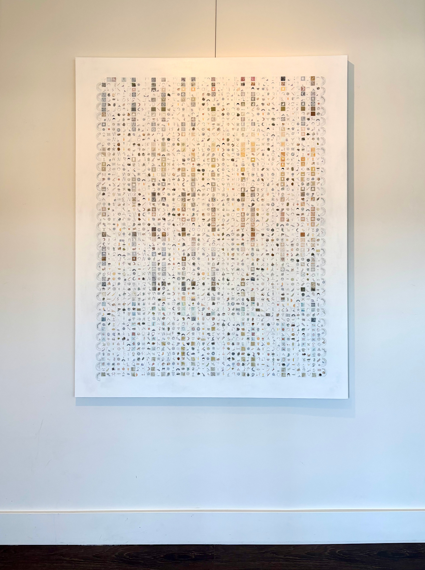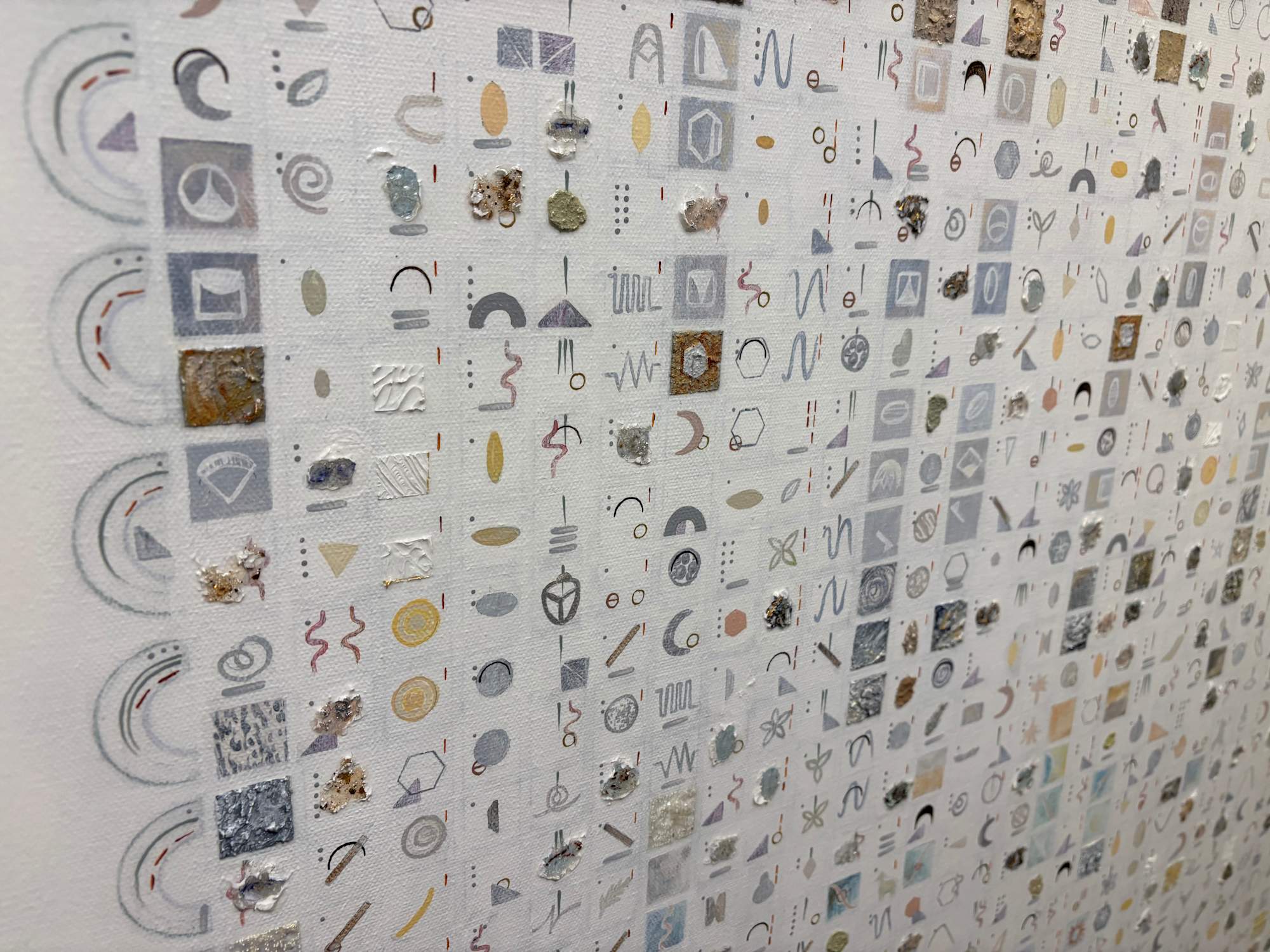 Math is a language that we use to describe the natural world. By constructing my own mathematical language and painting detailed symbols by hand, I channel my reverence for nature and the beauty of mathematical patterns into my artwork. The prime numbers, painted sequentially, are a mantra for my meditative painting process. With the logical mind focused on precisely painting one mathematical symbol at a time, the creative mind is unlocked for intuitive experimentation, self-reflection, and discovery.