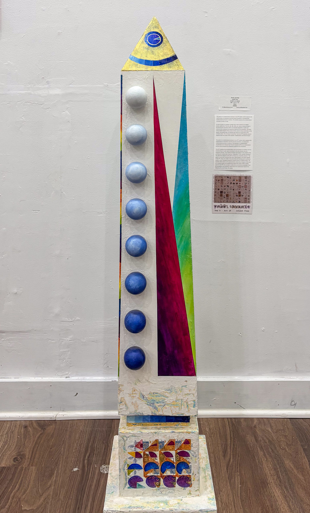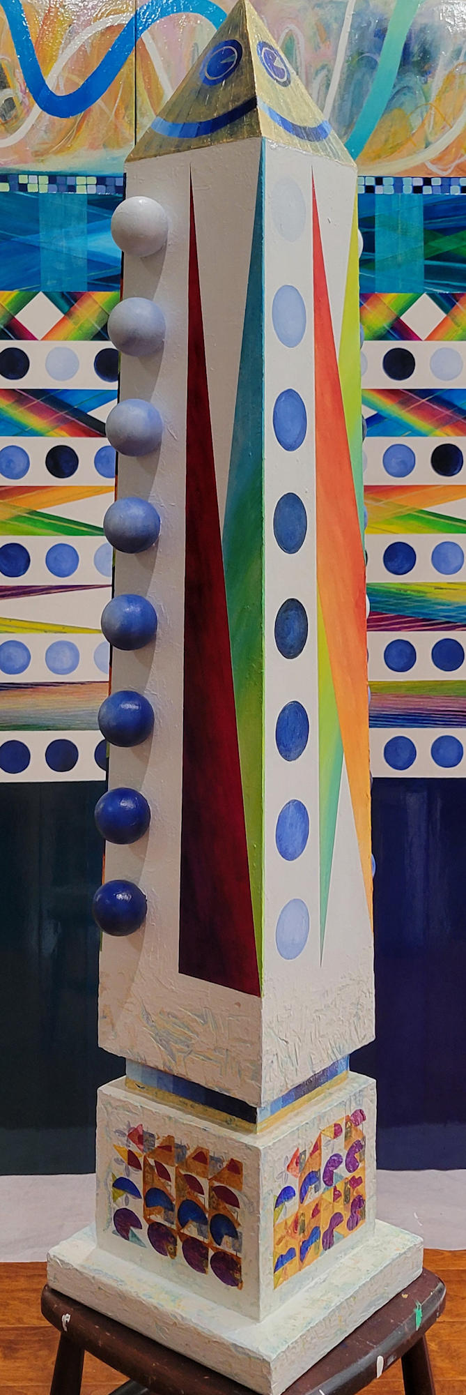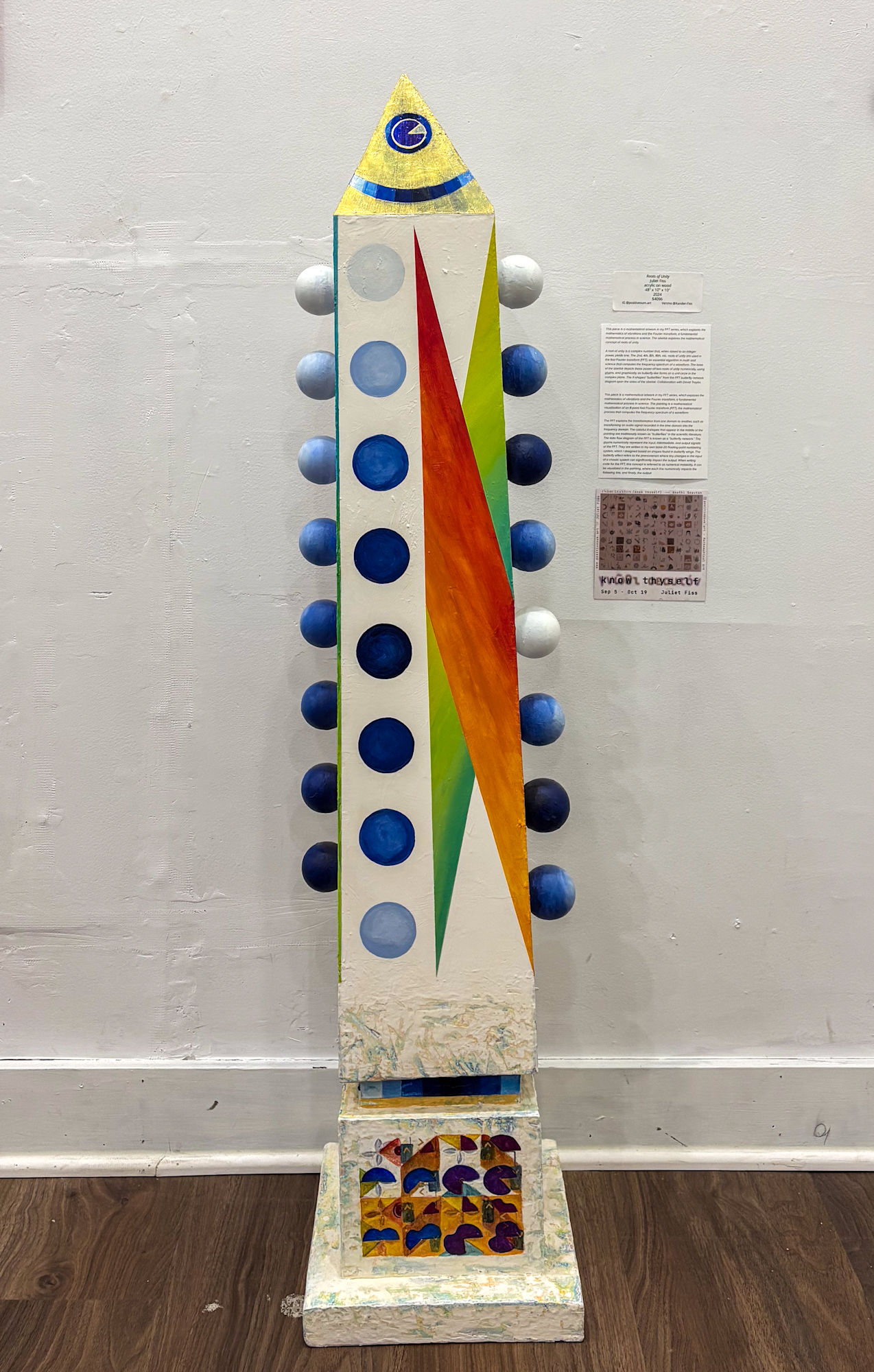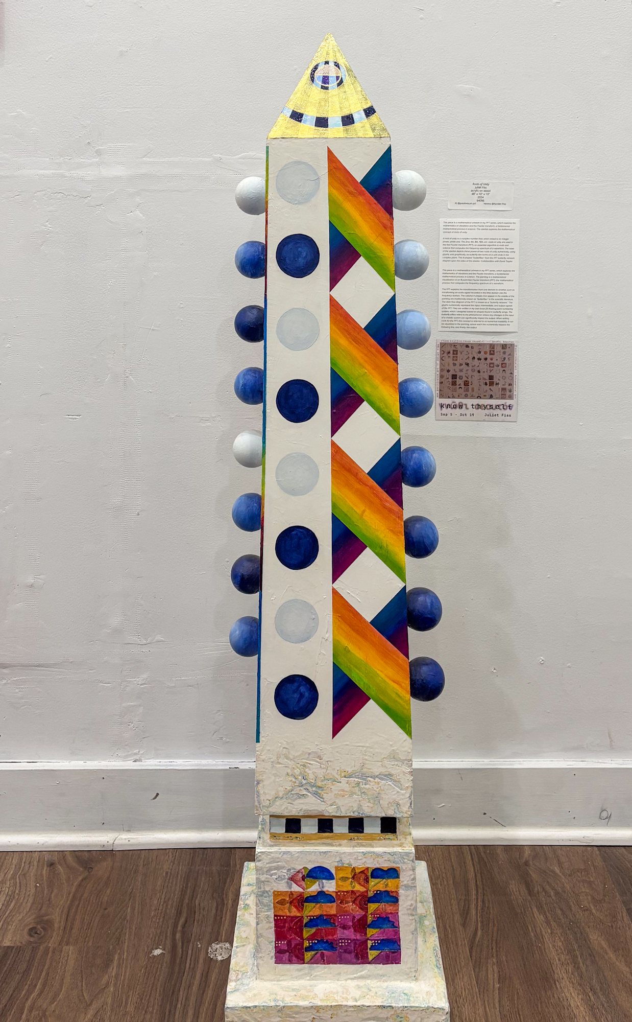 This piece is a mathematical artwork in my FFT series, which explores the mathematics of vibrations and the Fourier transform, a fundamental mathematical process in science. The obelisk explores the mathematical concept of roots of unity.