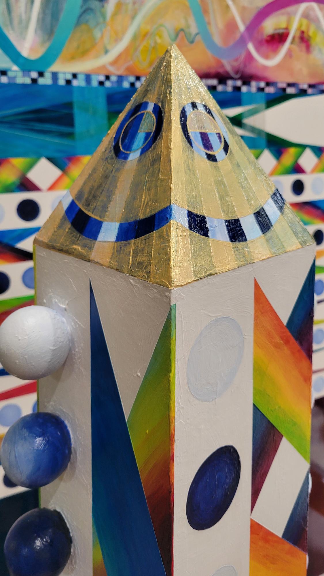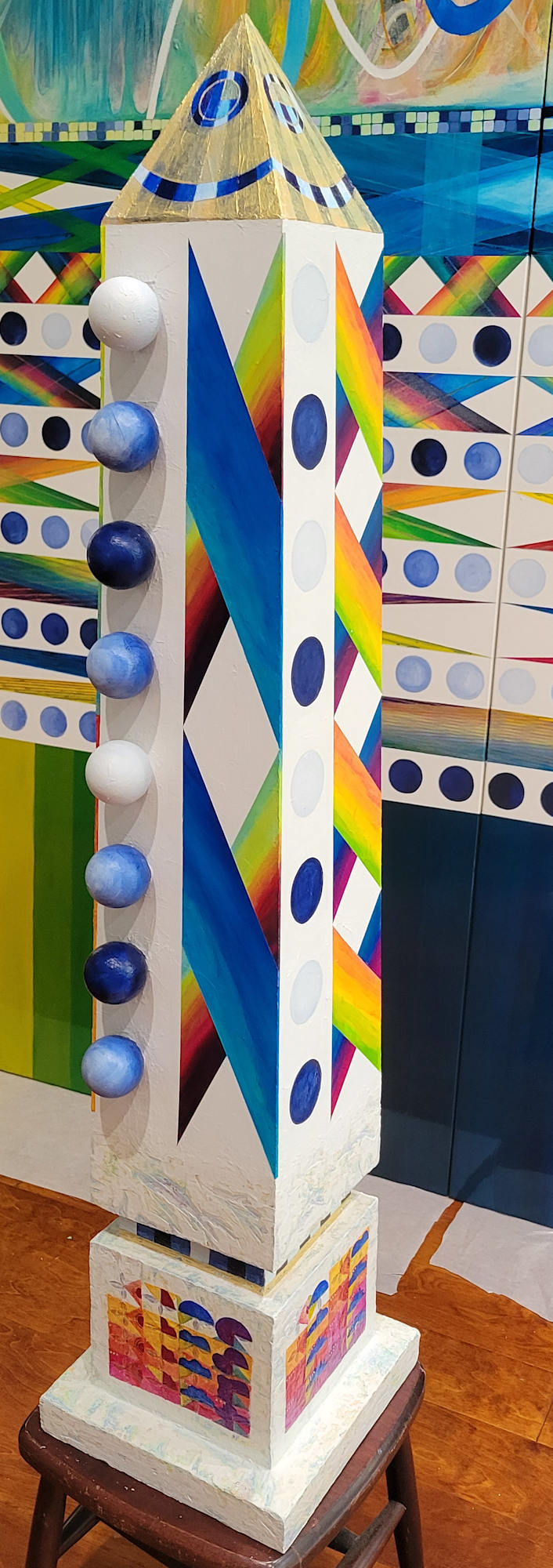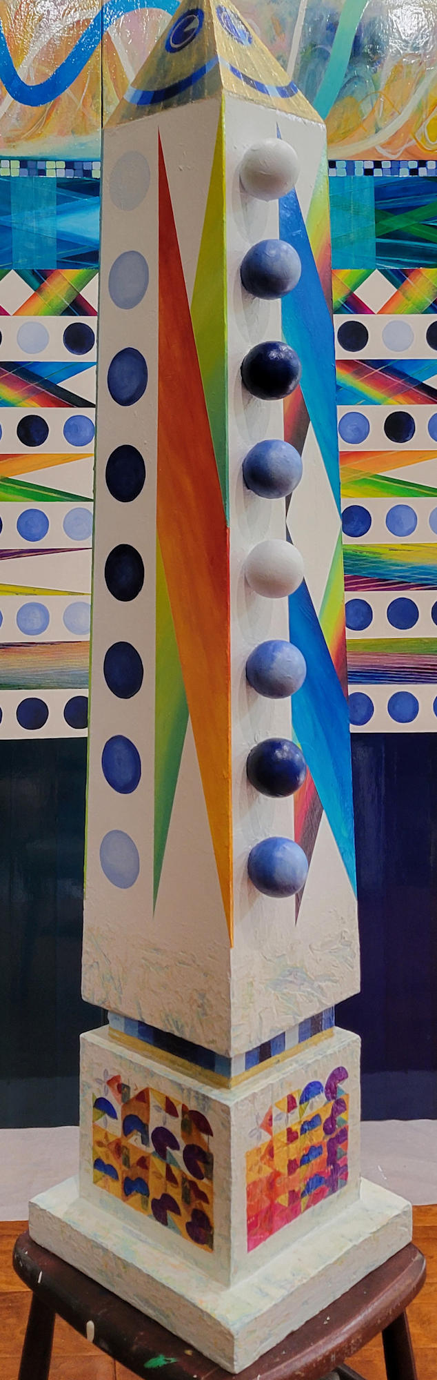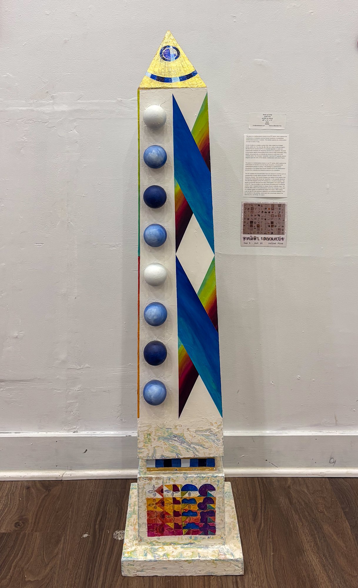 This piece is a mathematical artwork in my FFT series, which explores the mathematics of vibrations and the Fourier transform, a fundamental mathematical process in science. The obelisk explores the mathematical concept of roots of unity.