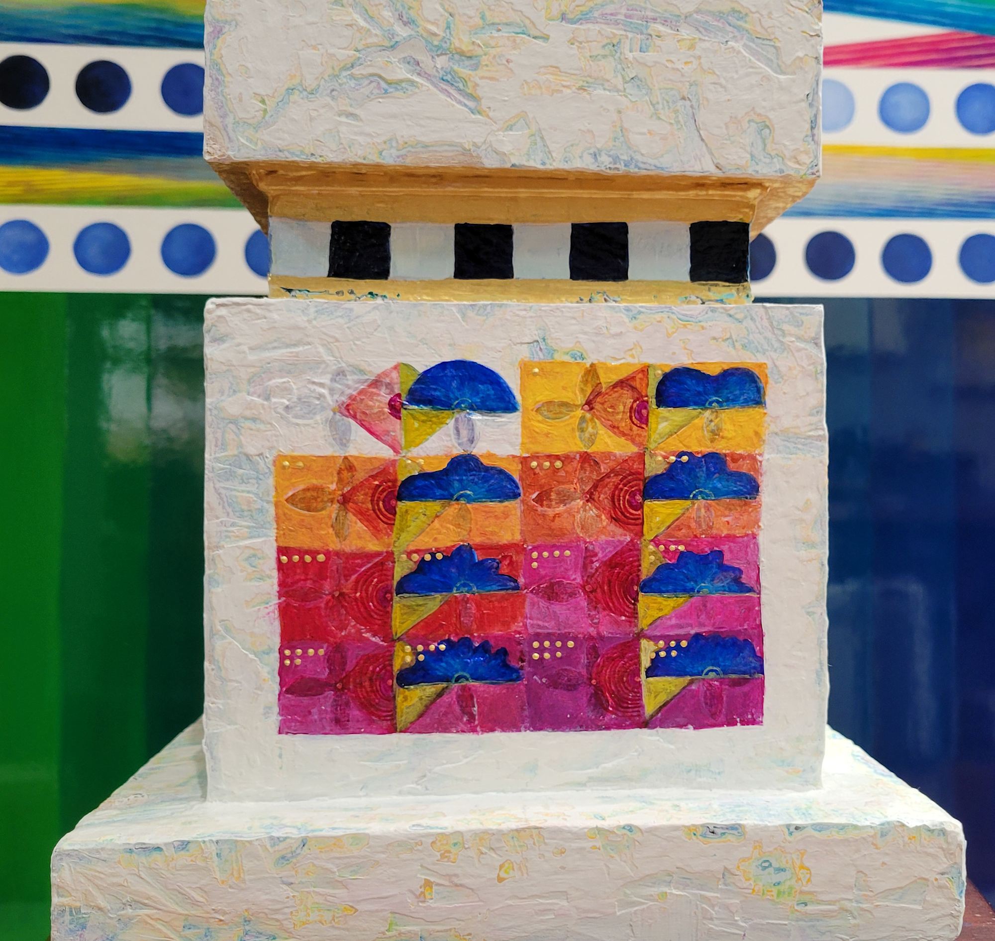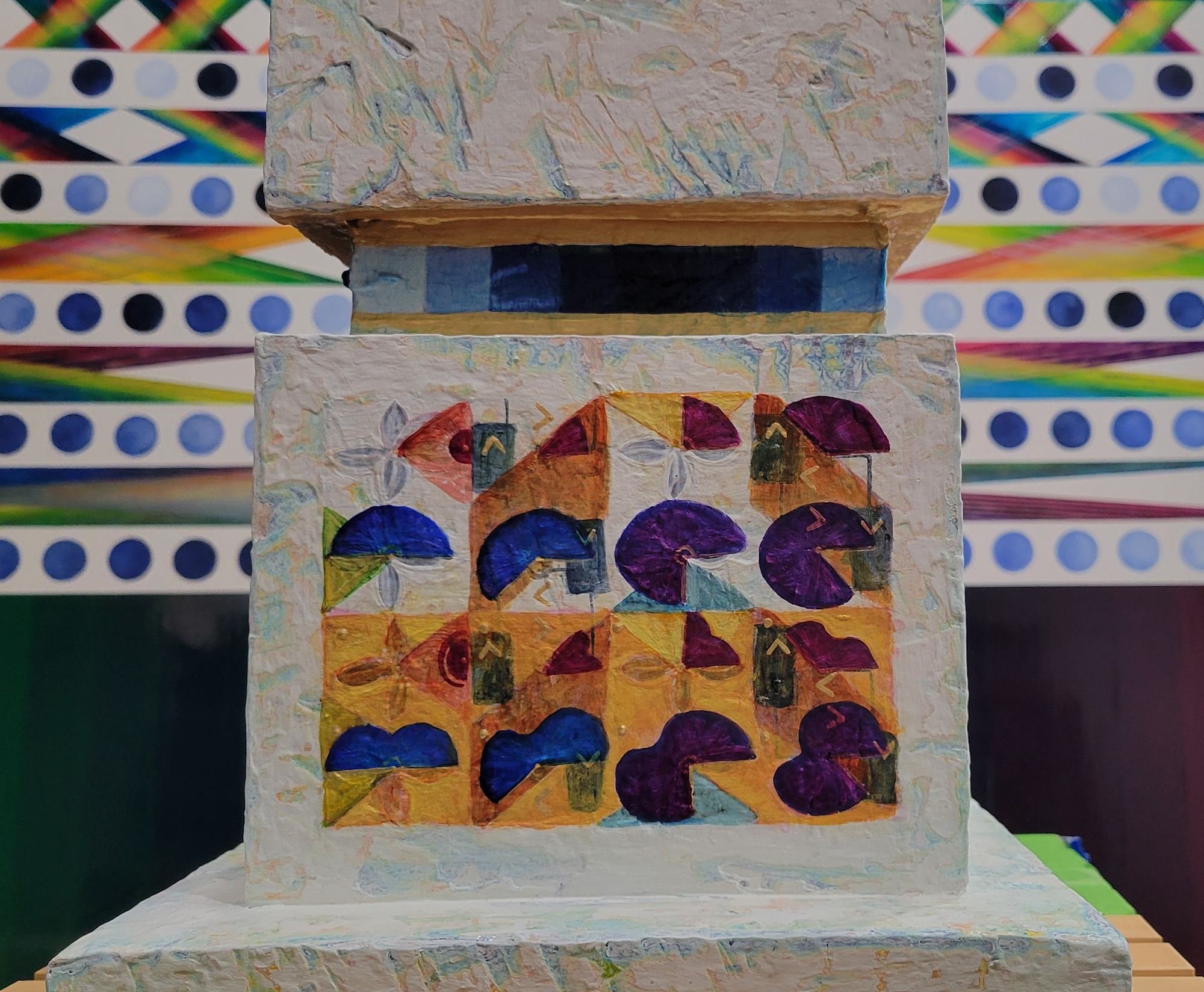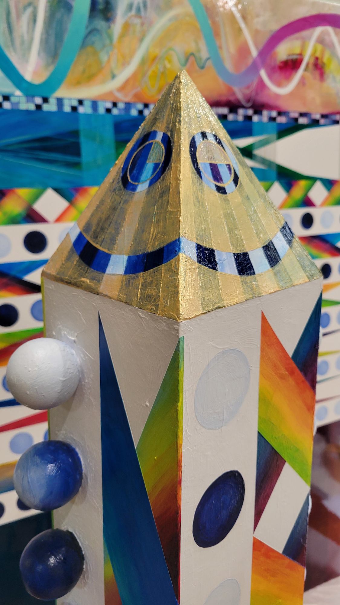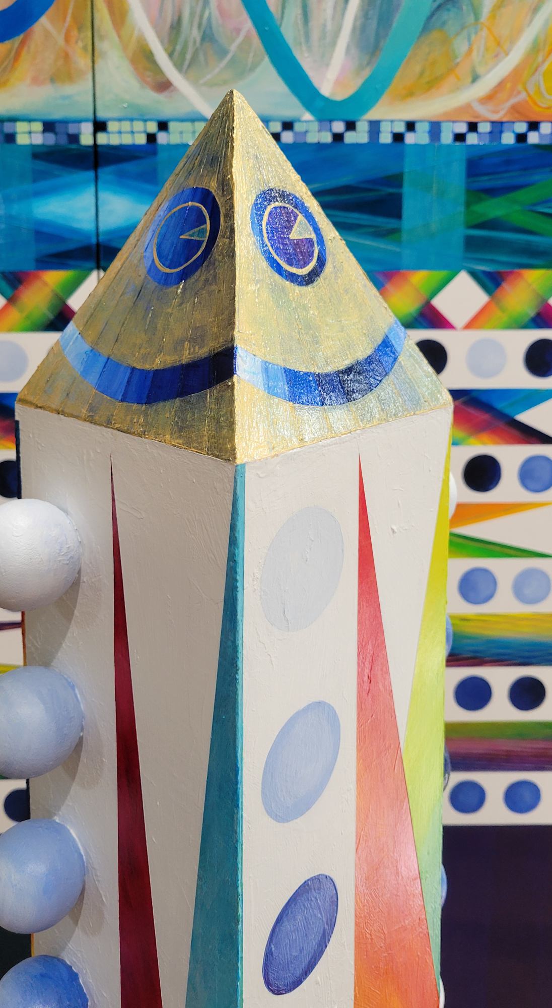This piece is a mathematical artwork in my FFT series, which explores the mathematics of vibrations and the Fourier transform, a fundamental mathematical process in science. The obelisk explores the mathematical concept of roots of unity.
