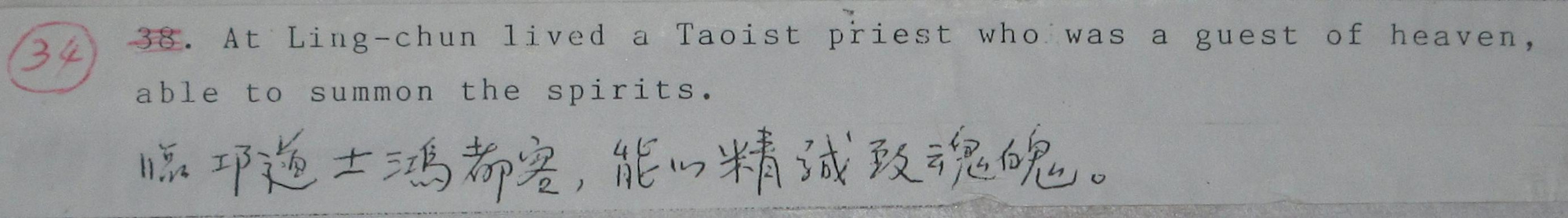34. At Ling-chun lived a Taoist priest who was a guest of heaven, able to summon the spirits.