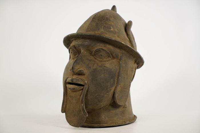 Many Benin sculptures portray other cultures who had a huge influence in their history. For instance, this bronze head depicts a Portuguese soldier.