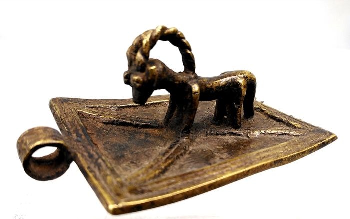 Pectoral Lobi pendant, whose central part represents a ram, an animal symbolizing strength and tenacity. Beautiful brown and gold patina.