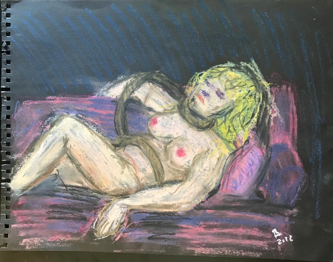 She is having a rough time of it and as she is alone, she contemplates ending it all. As she begins, she has second thoughts and hesitates-- Instead of immediately doing it, she lies down and falls into a sleep.