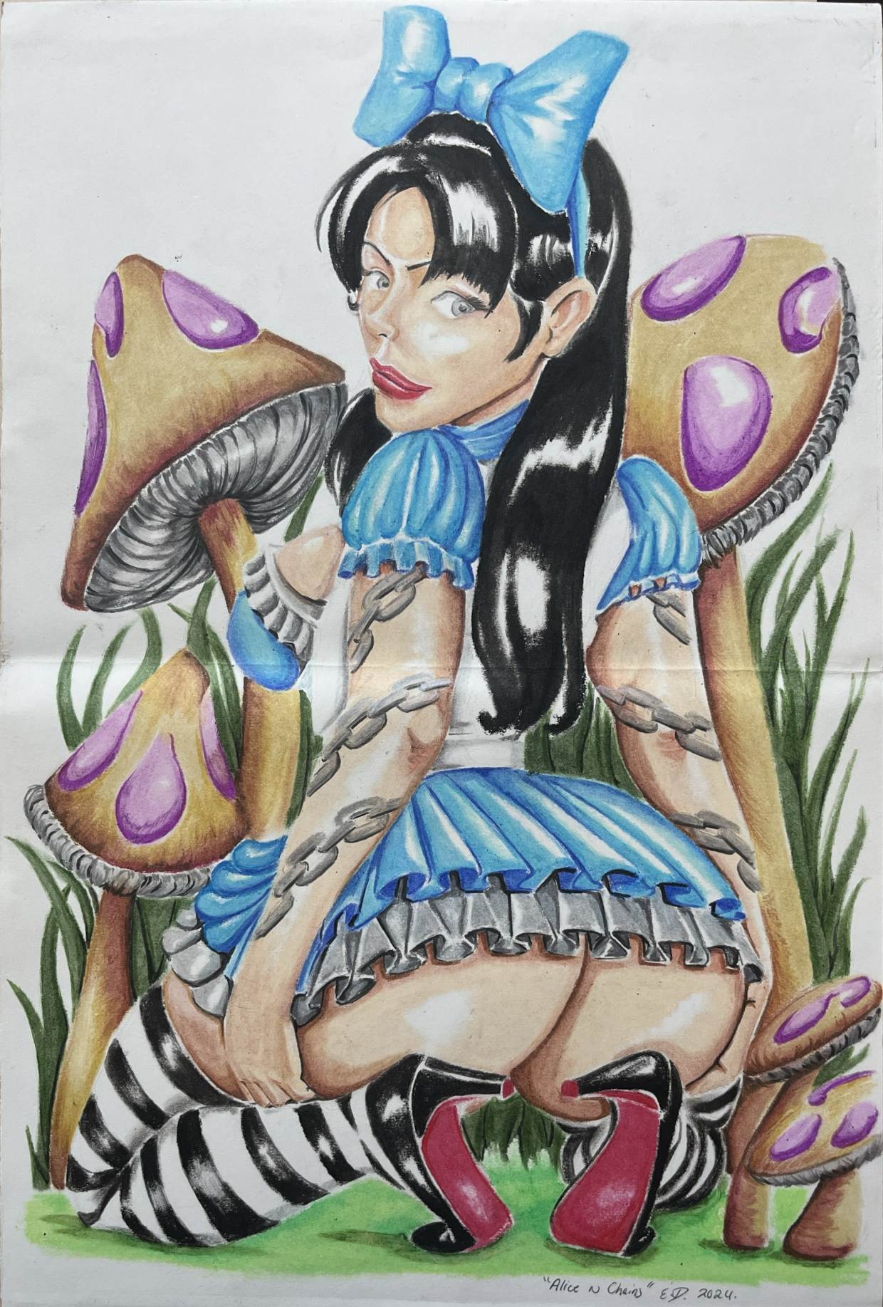 I like the story of Alice in Wonderland and I also like the Rock Band Alice "n" Chains. So I combined them with a lot of colors.