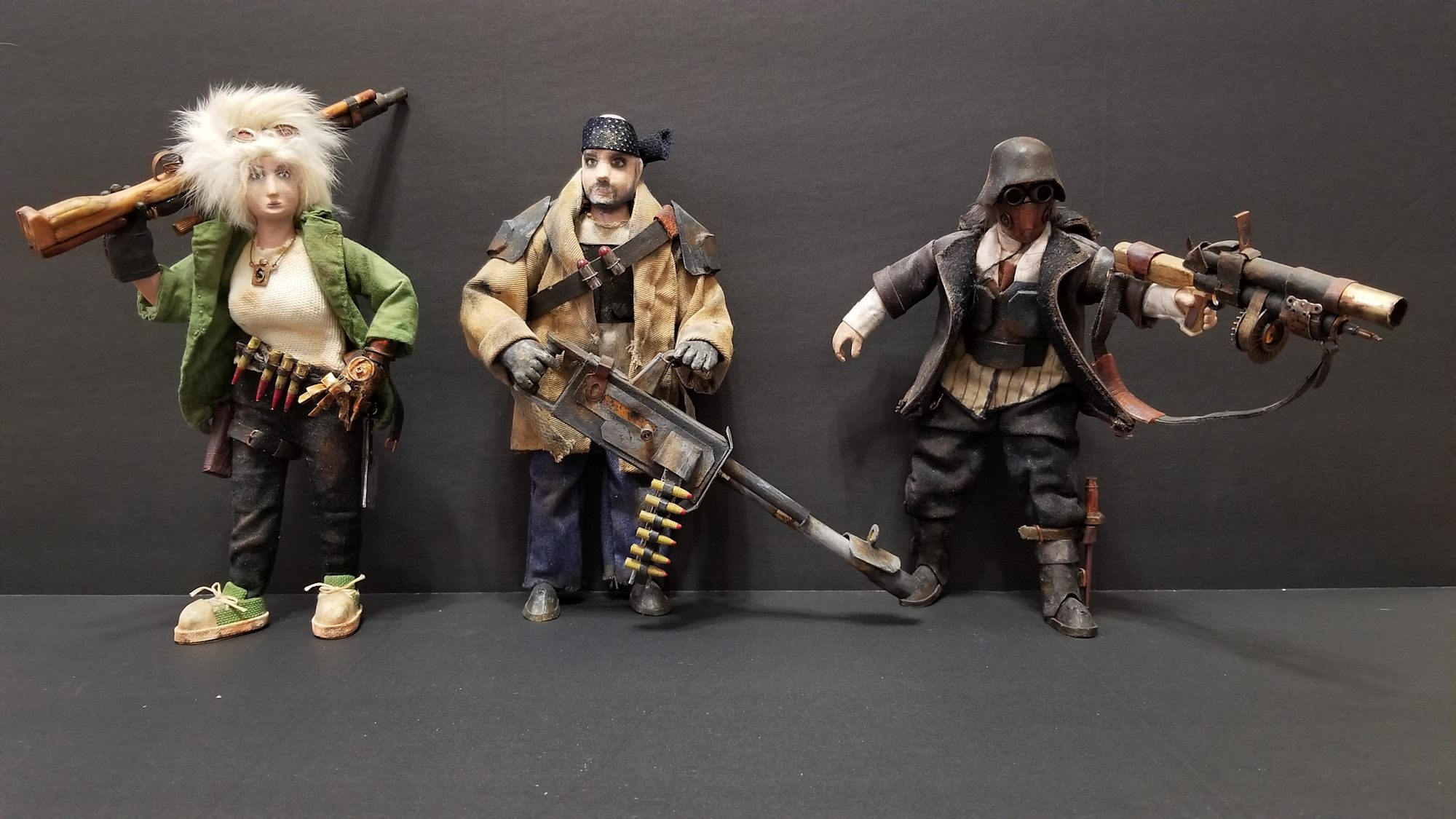 paper, soap, cardboard, cloth, thread, pen barrels, paint, thread, glue, fur, string, human hair