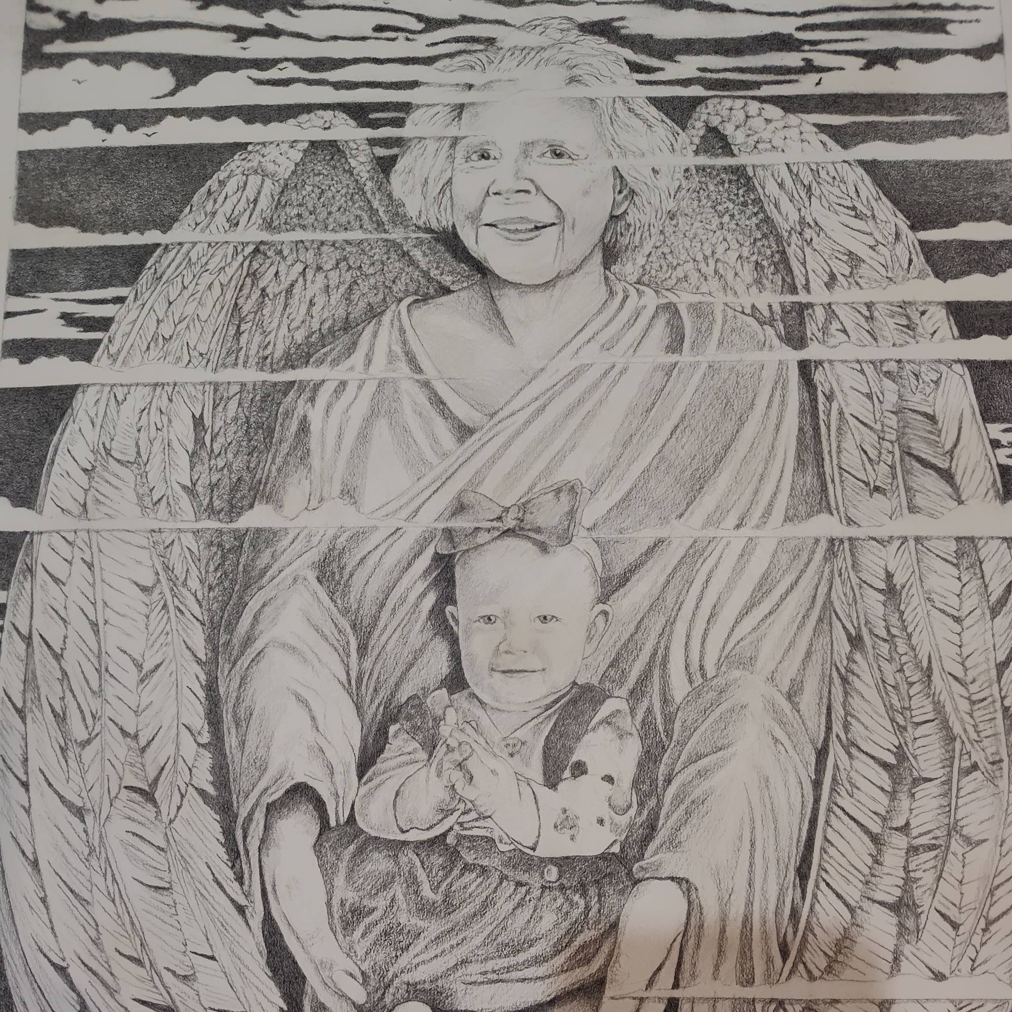 Somewhat of a memorial portrait of a grandma holding her granddaughter tightly and always looking out for her.