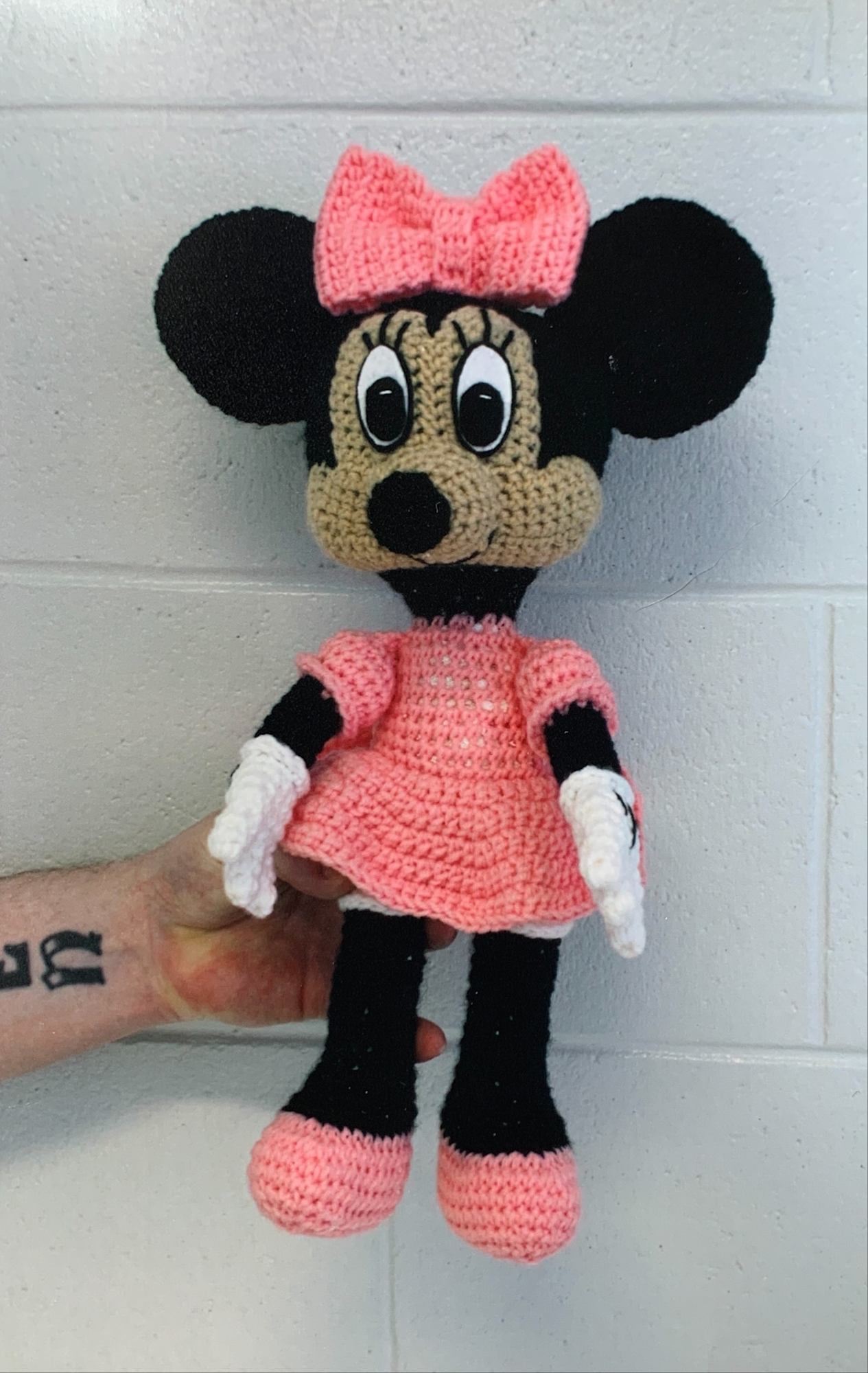 "I modified the eyes, they were originally crocheted with fine yarn and a steel hook. I used felt instead because we can't have metal hooks."