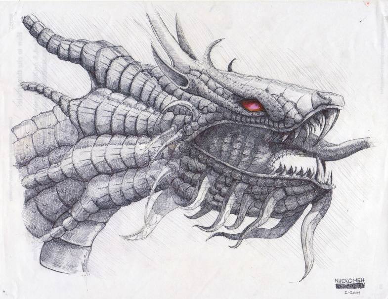 “Experiments in cross-hatching, Dragon inspired by Seattle sculpture, Drawn while working on “Nadesa Kudomo”, a short story manuscript."