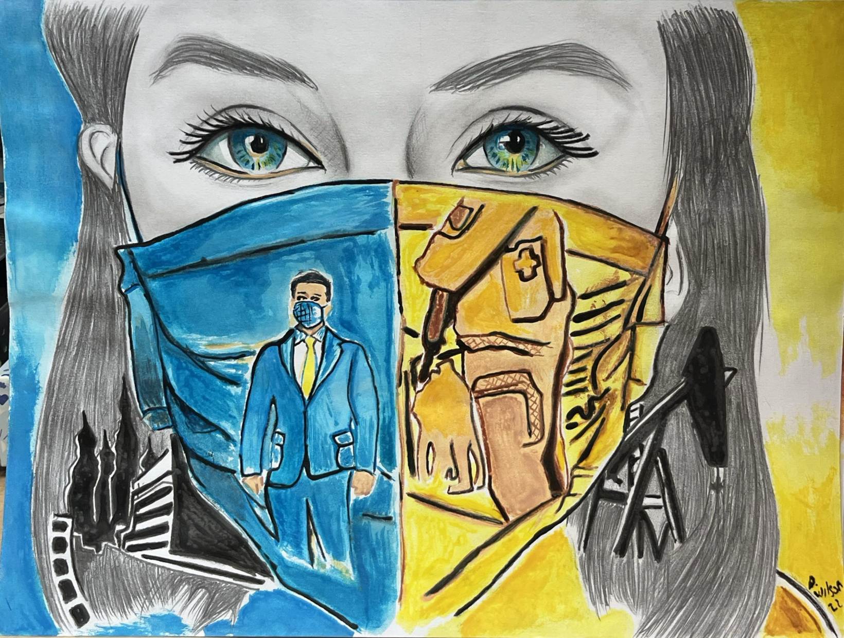 I wanted to convey the mentatlity, the emotions of what this war is doing to the people of Ukraine, and how through the myopic ideals of a person tries to cripple and destory a country, a person can defiantly stand tall, and hope that solidarity wil overcome the storm.