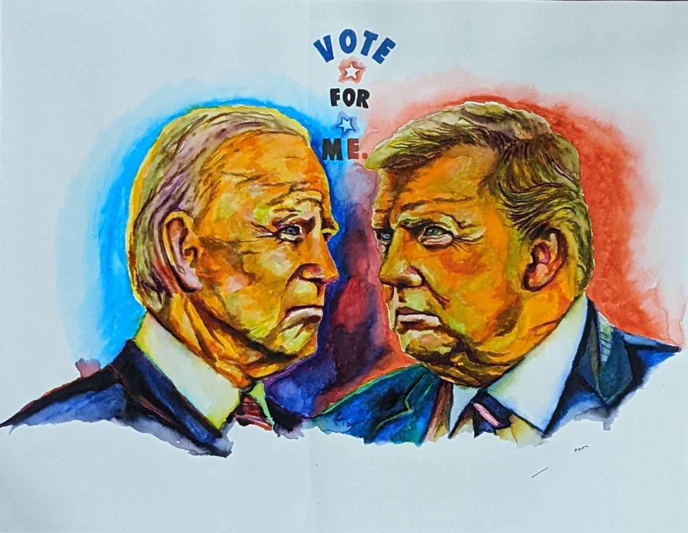 “I created this piece to speak on the current state of division in the United States. It was quite clear to me that political campaigns are built on solely divisiveness and not on any real change or reform. It paints a red and blue America.”