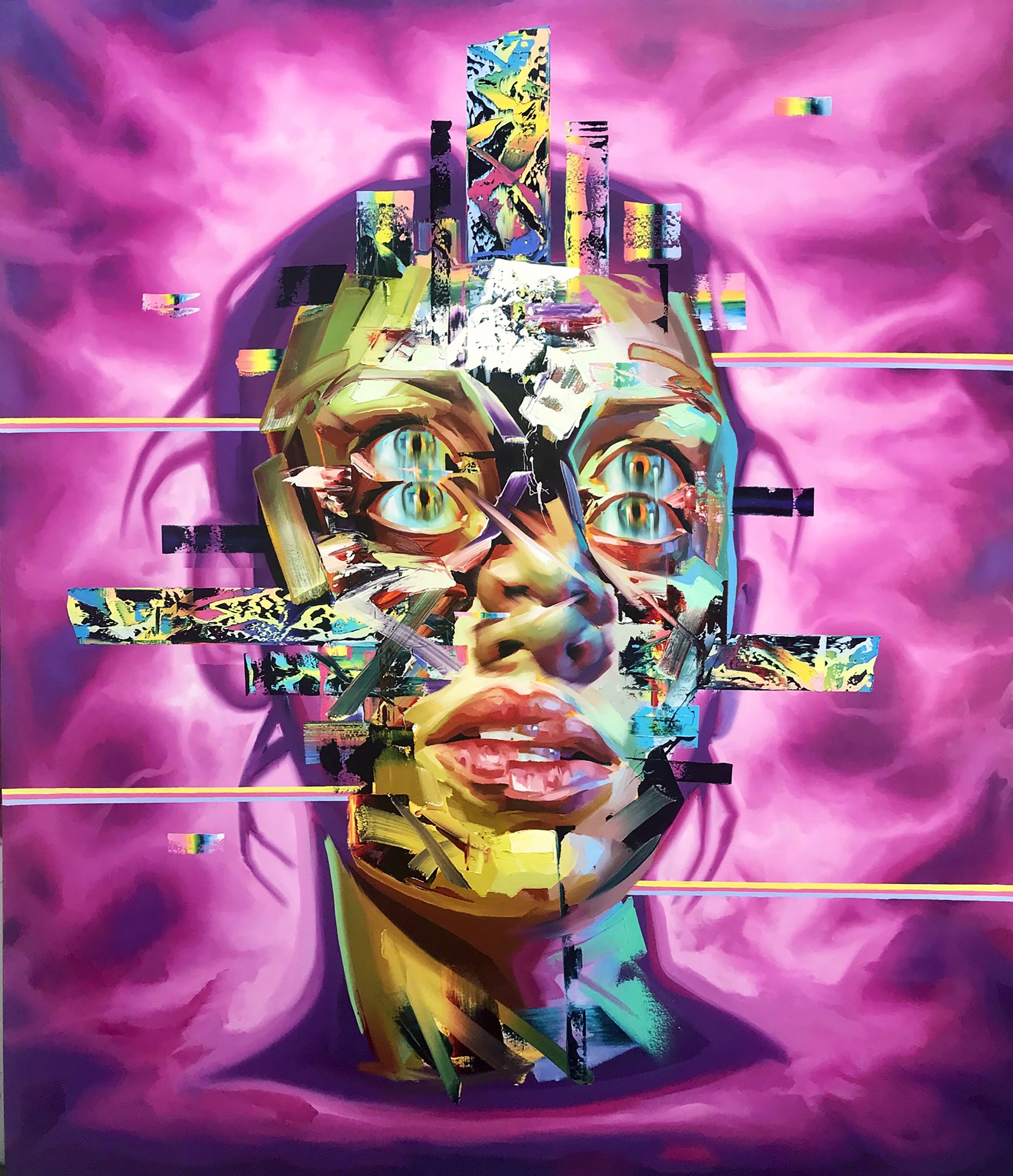 American artist, Justin Bower, explores the notion of identity in a post-human society through his large-scale oil on canvas paintings.