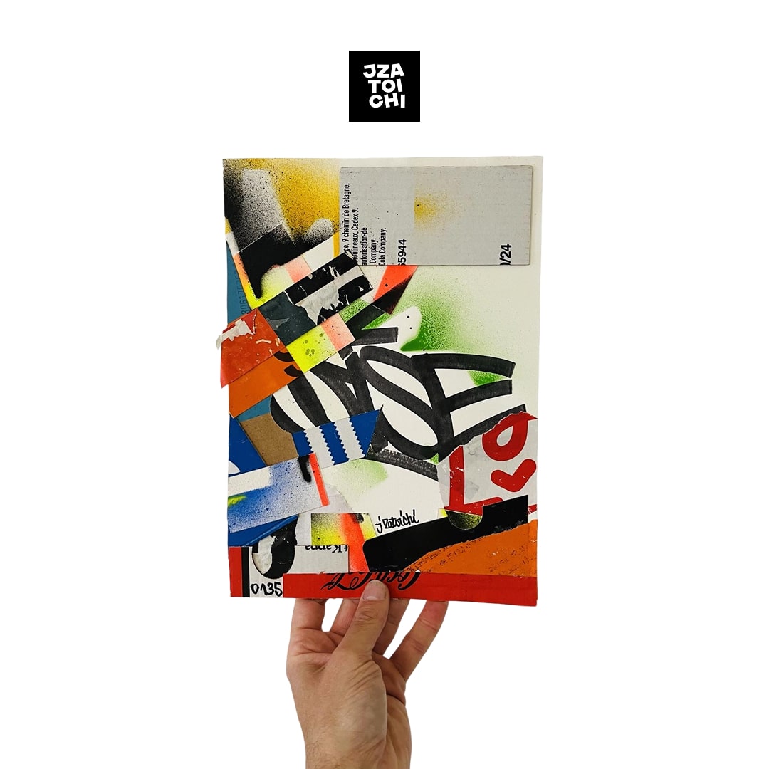 Abstract collage artist blending torn posters, typography & graffiti into layered works where urban chaos meets silent structure.