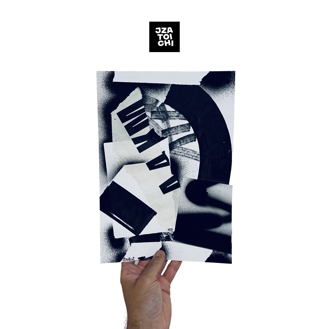 Abstract collage artist blending torn posters, typography & graffiti into layered works where urban chaos meets silent structure.