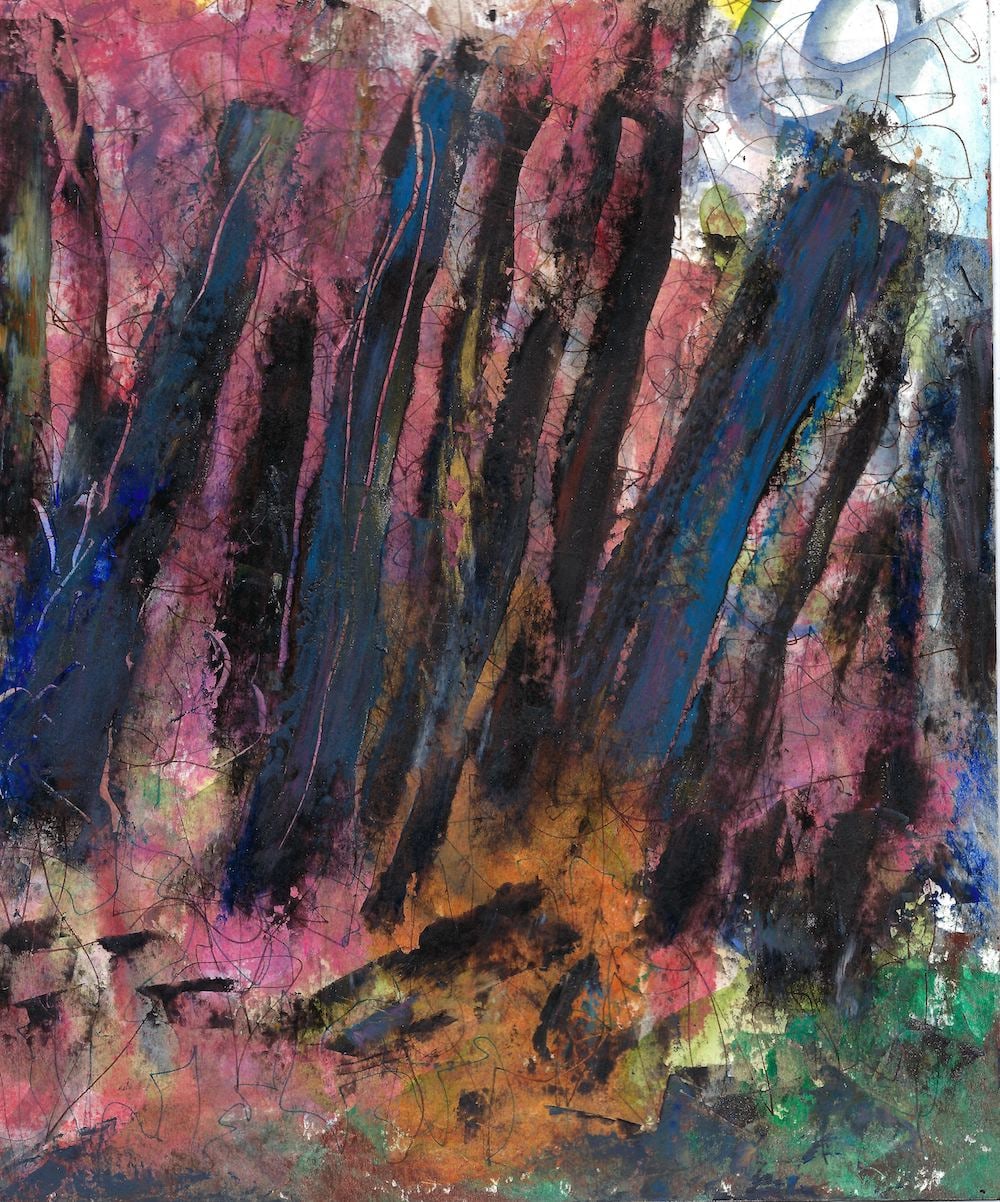 oil pastel, acrylic on paper