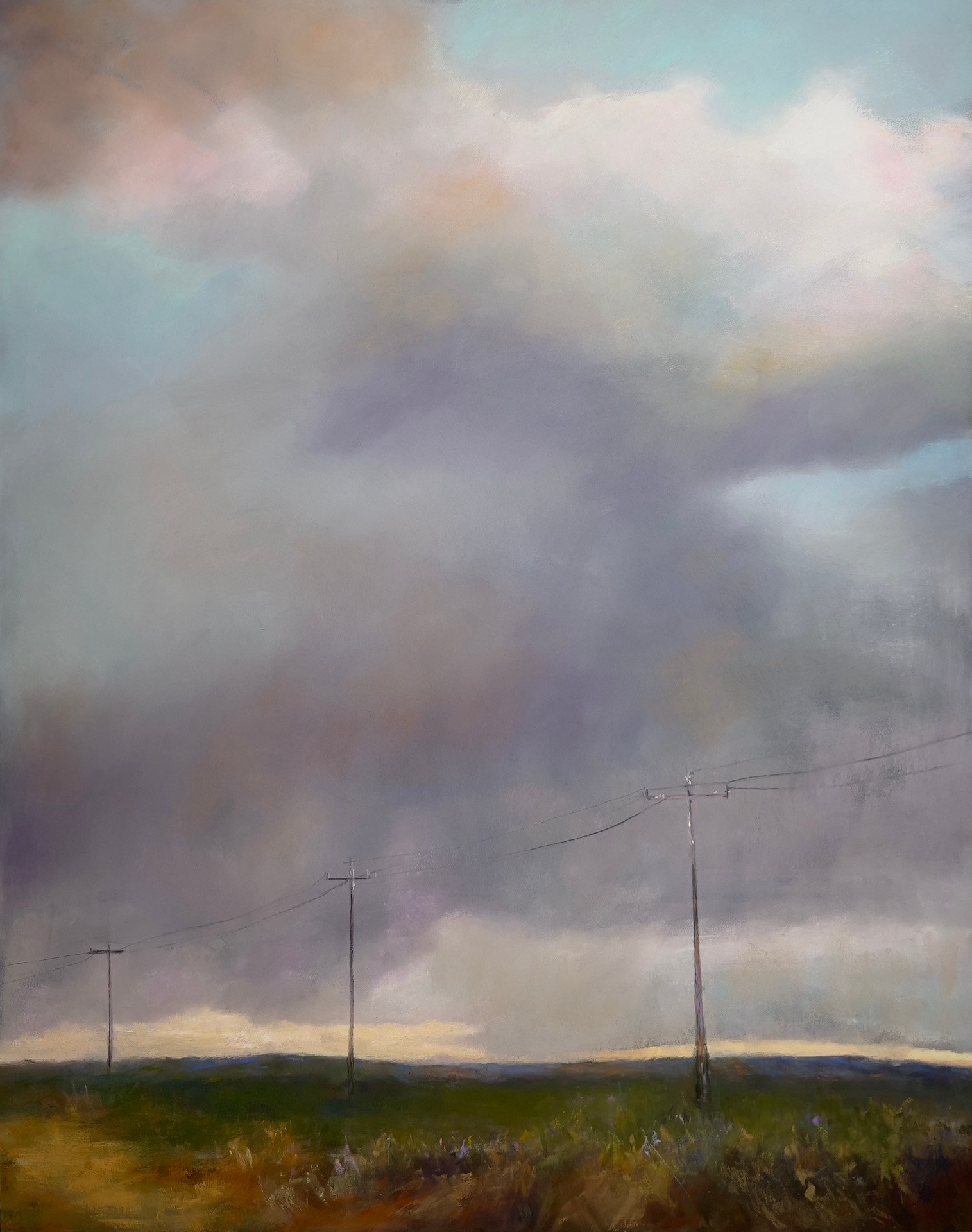 This painting captures the sense of self-reflection that occurs during long drives across the open road, humbled by the enormity of big skies.