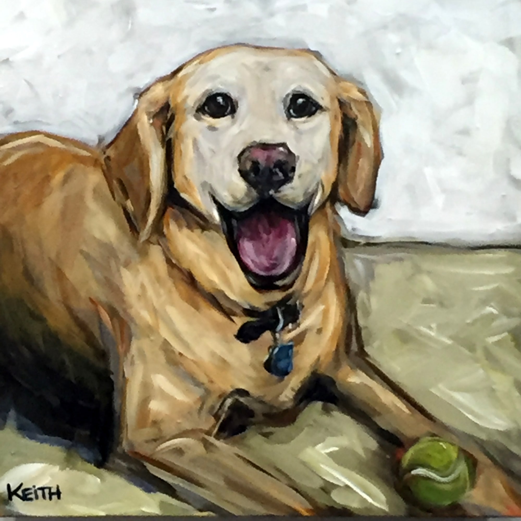 Here is my final piece from my Christmas commissions. Bailey is what I refer to as one of my "Rainbow bridge" clients. My rainbow bridge clients often are the most rewarding for me. It makes me enjoy "my job" that much more, knowing my work can provide a bit comfort (and even joy) for someone after loosing their precious fur baby. You can sense from her photo how sweet (and loved) Bailey was. The photo doesn't do the painting justice either (unfortunately my Canon rebel took a fall a few days before Christmas, and I had to take my photos with my iphone).