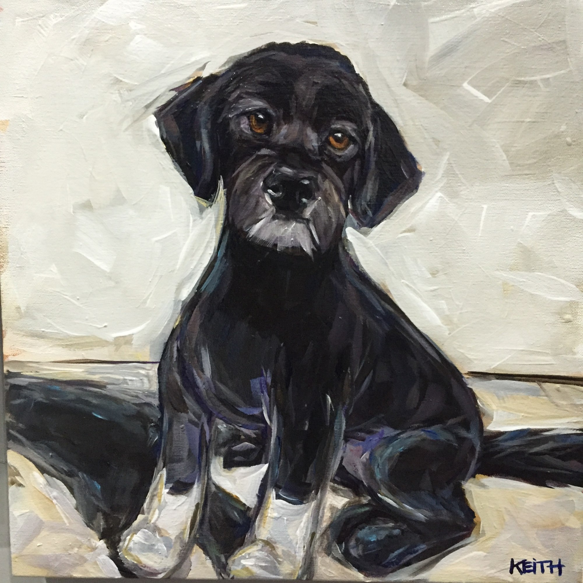 Here is the ever so handsome Sam. Sam is a Portuguese Water Dog, and we wanted to be sure to include his white paws in the painting. He was a big success and even Sam liked it,