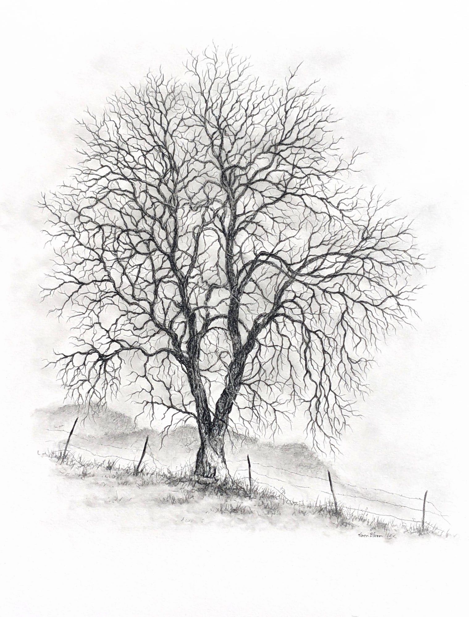 Black and white leafless tree.