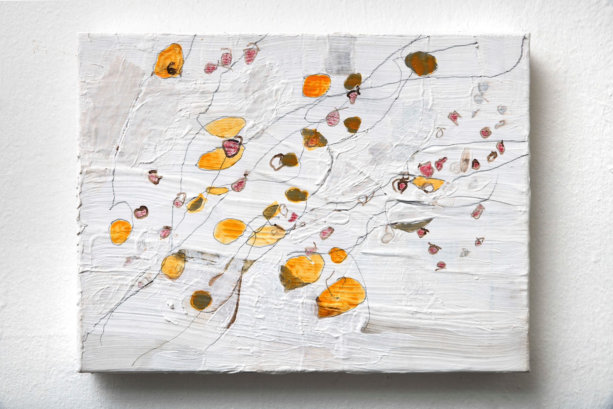 Acrylic, paper, pencil, colored pencil and ink on canvas