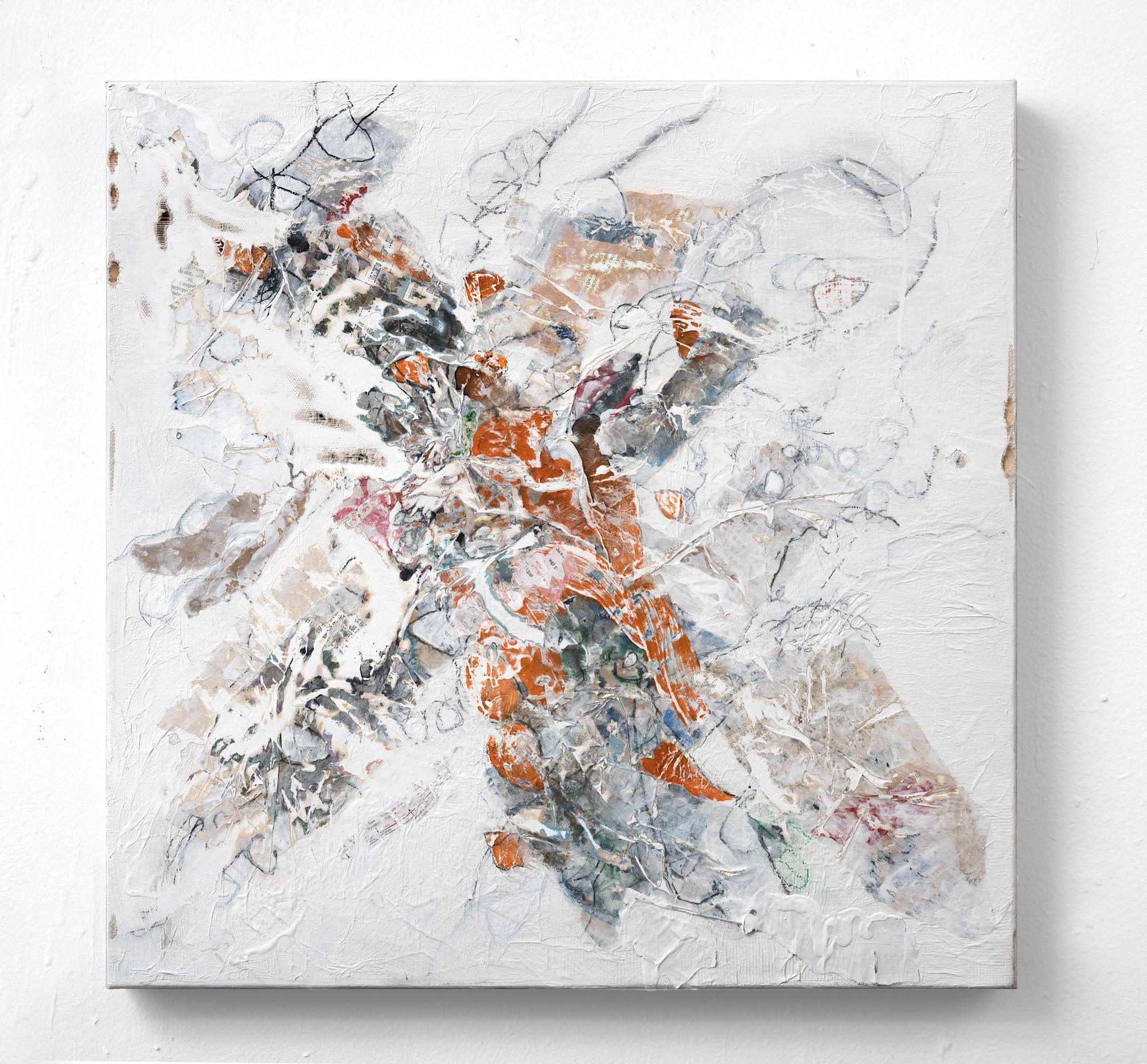 Acrylic, paper, gesso, pencil and charcoal on canvas