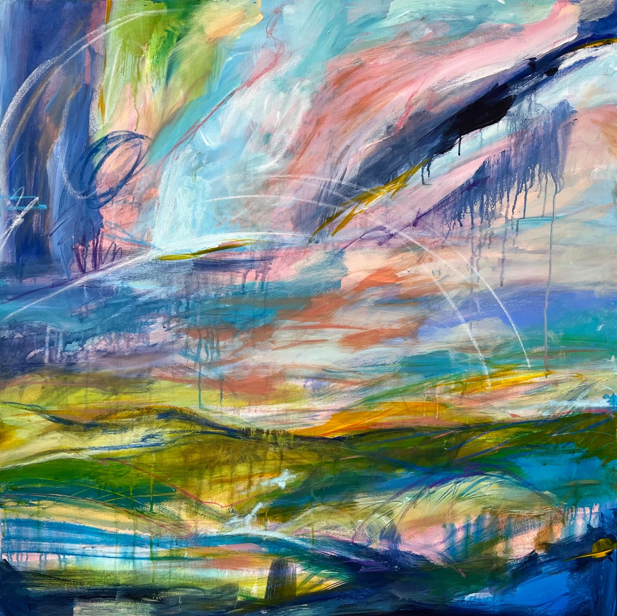 This painting is part of a recent series created during the pandemic for my 2022 show "Transcending the Ordinary". The paintings are vibrant abstract landscapes that offer a sense of wonder and joy during our current troubled times.