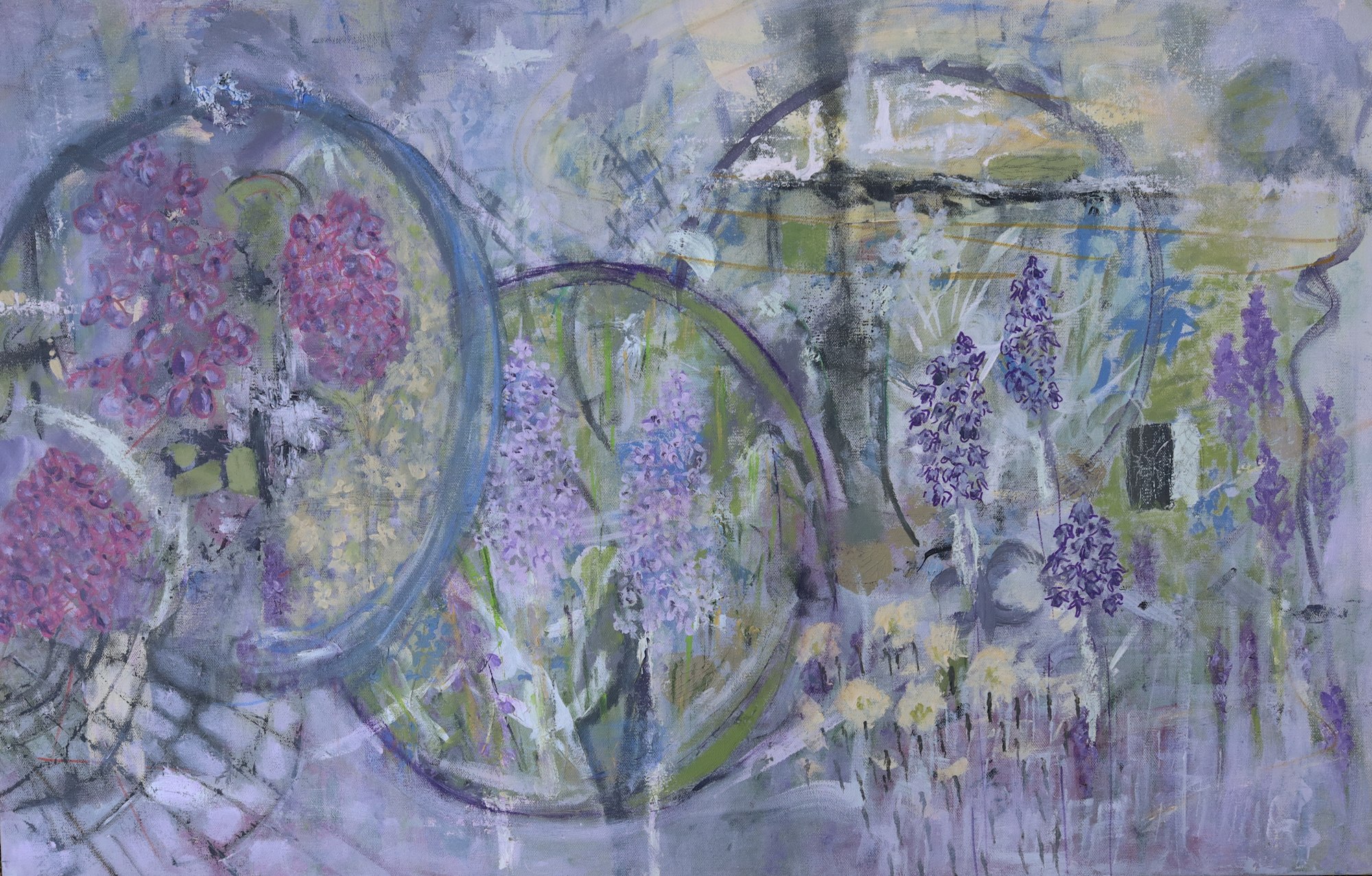 Inspiration was my spring garden as the heather, blue bells, lilac, pansy and other plants with greenery waiting to bud. My son saw this and immediately said "those are Grandma's color." As it turned out my Mother loved it.