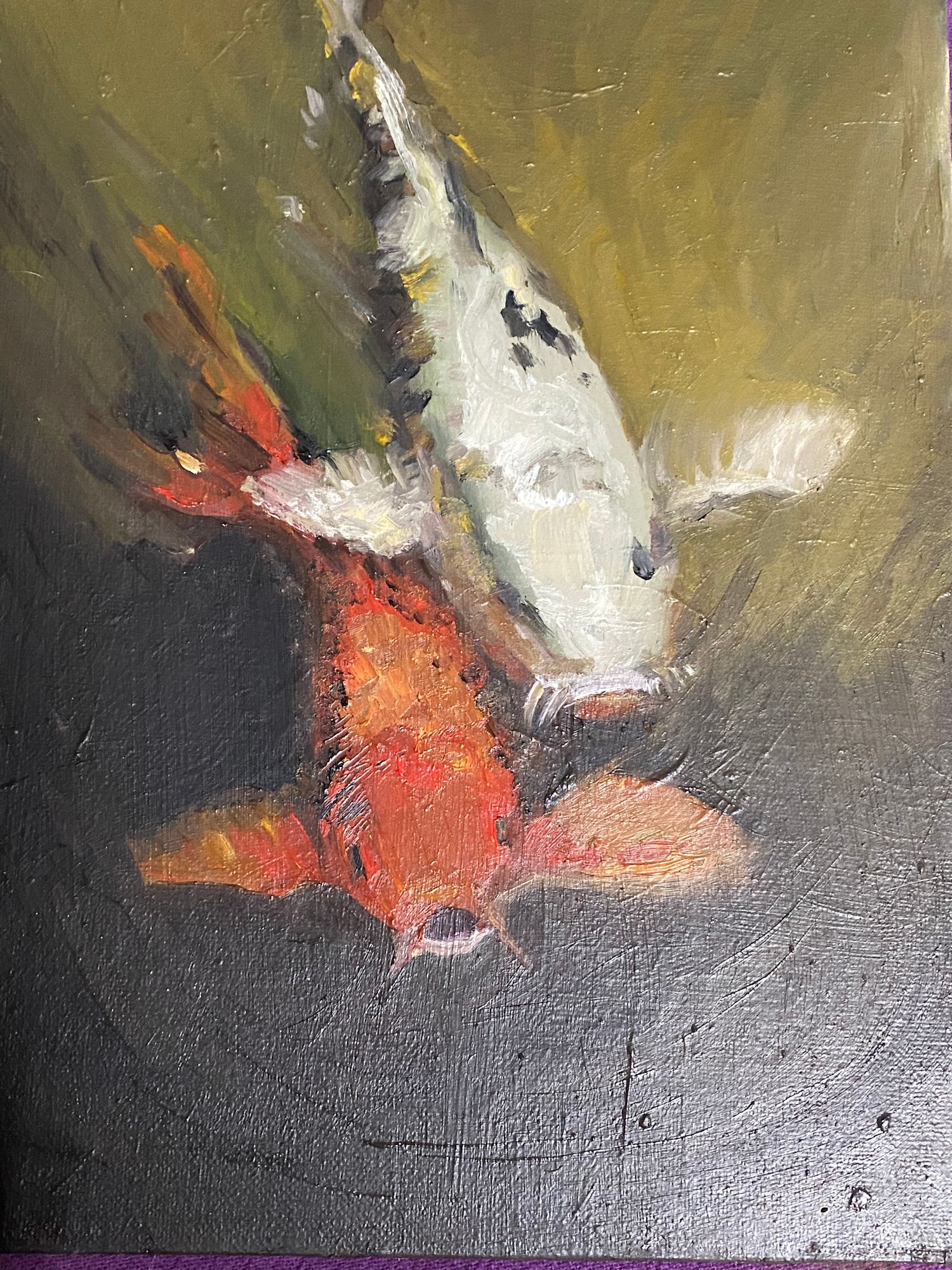 Two koi carp diving into murky waters. This piece was used in the animated poetry sequence - Nishikigoi by KLM aka #thegirlwiththekoitattoo.