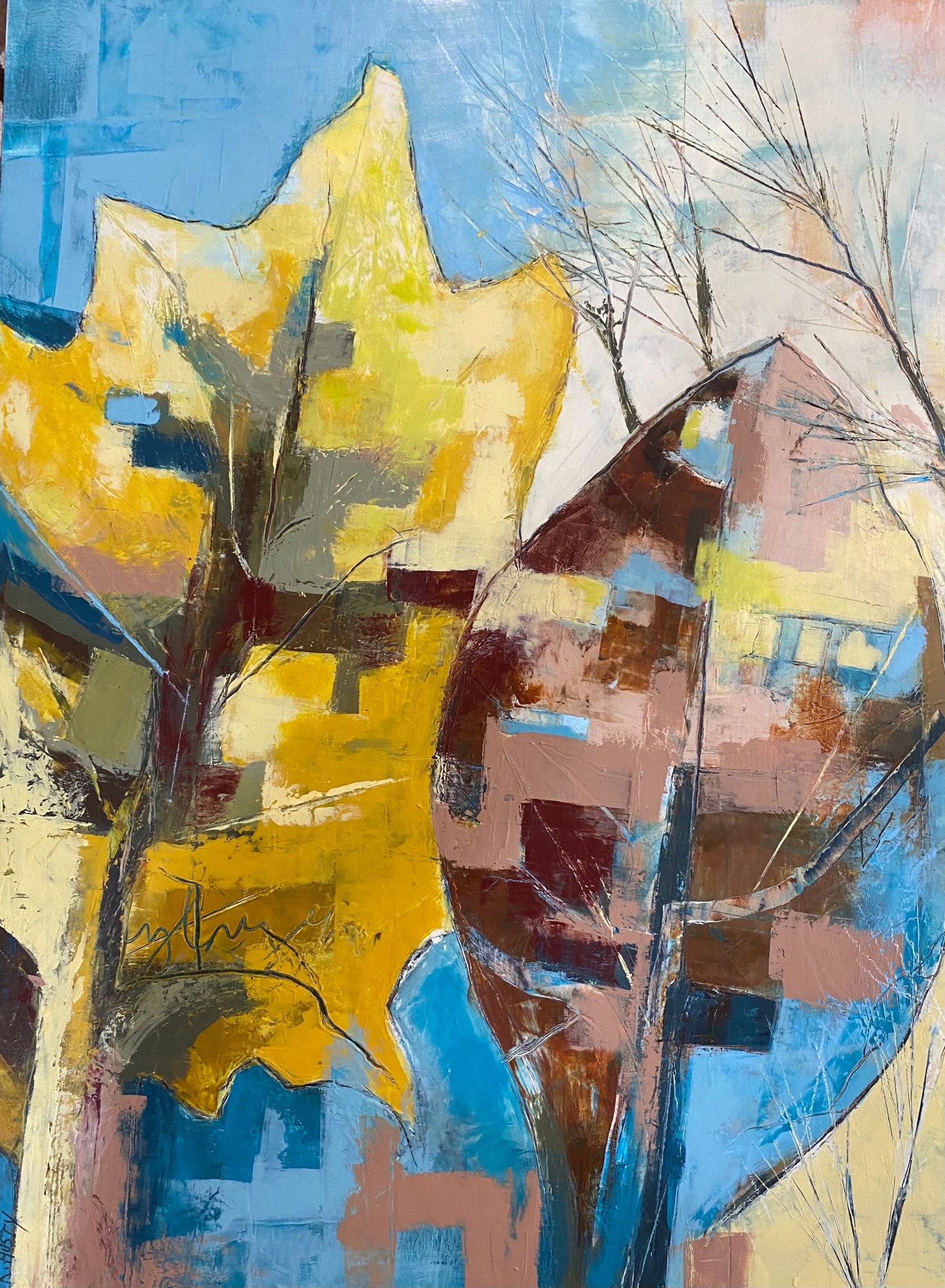 Botanical Leaves Oil and Cold wax painting on 1.5" cradled wood panel. Sides finished. no framing needed
