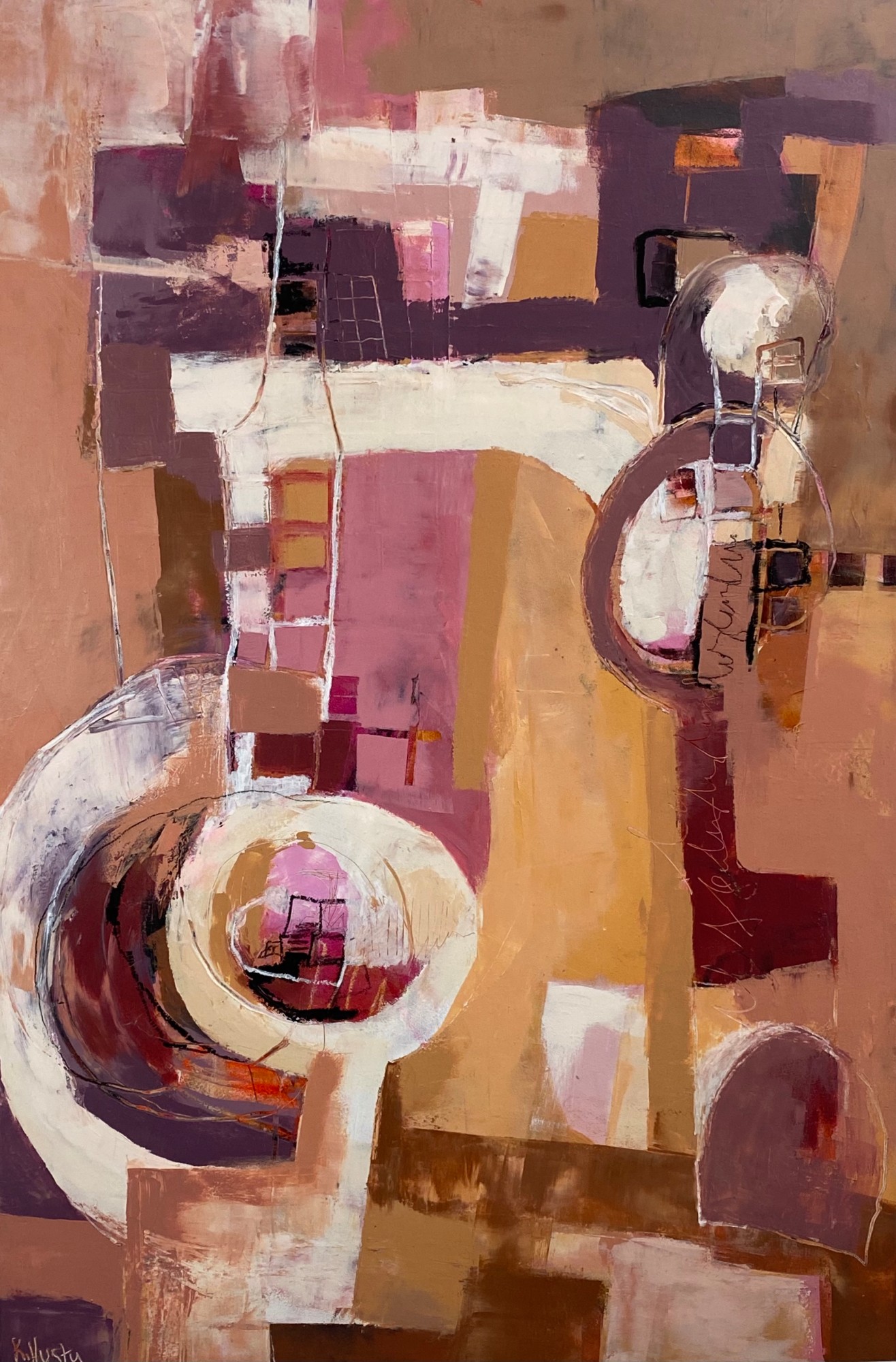Abstract Neutral and Peach Oil and cold wax painting on 1.7/8" cradled wood panel with finished sides. no need for frame