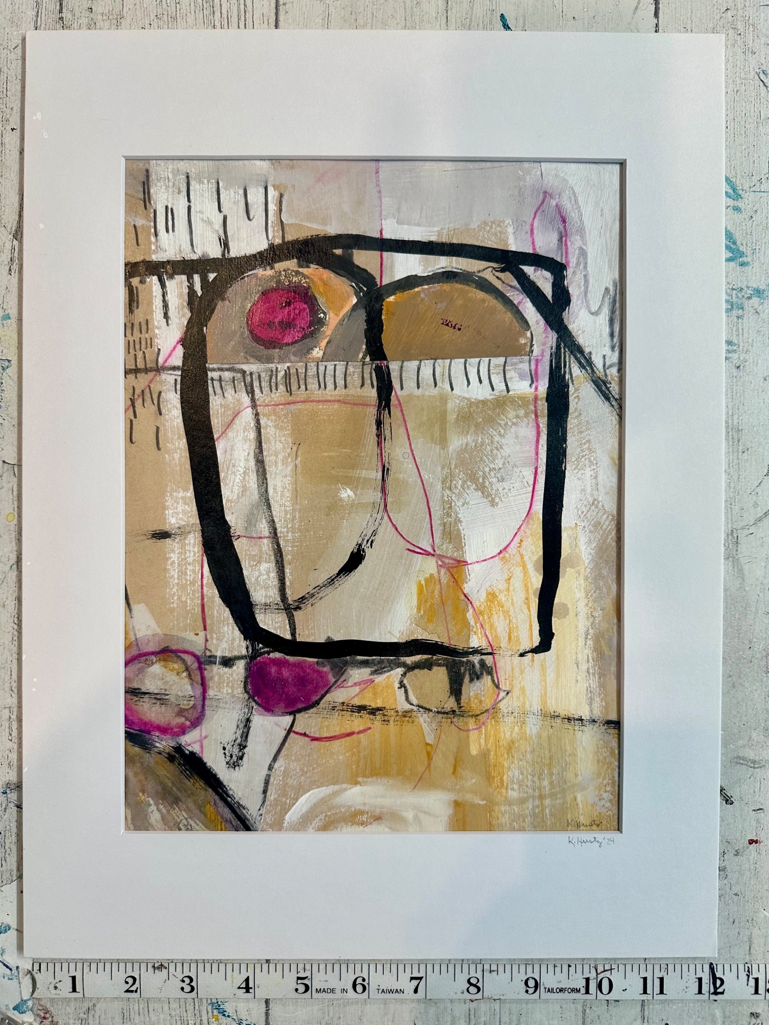 Yellow-Ochre,Magenta Abstract on Paper #101, Original Artwork, Small Abstract painting, Modern decor, yellow and pink decor,Karin Husty Art