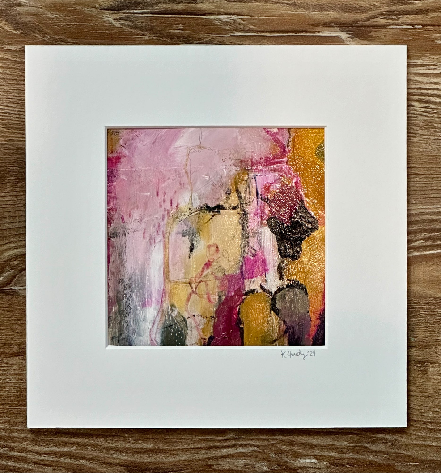 Yellow-Ochre,Magenta Abstract on Paper #107, Original Artwork, Small Abstract painting, Modern decor, yellow and pink decor,Karin Husty Art
