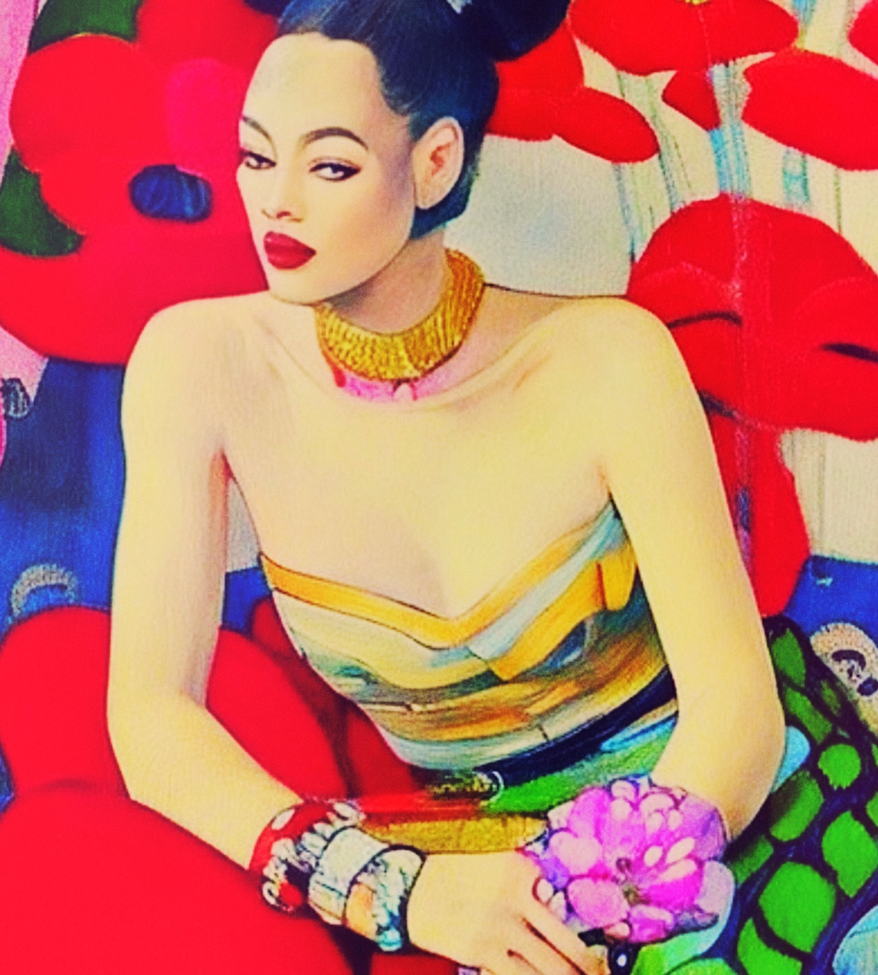 Portrait of a woman who embodies different cultures and heritages in the Style of Paul Gauguin