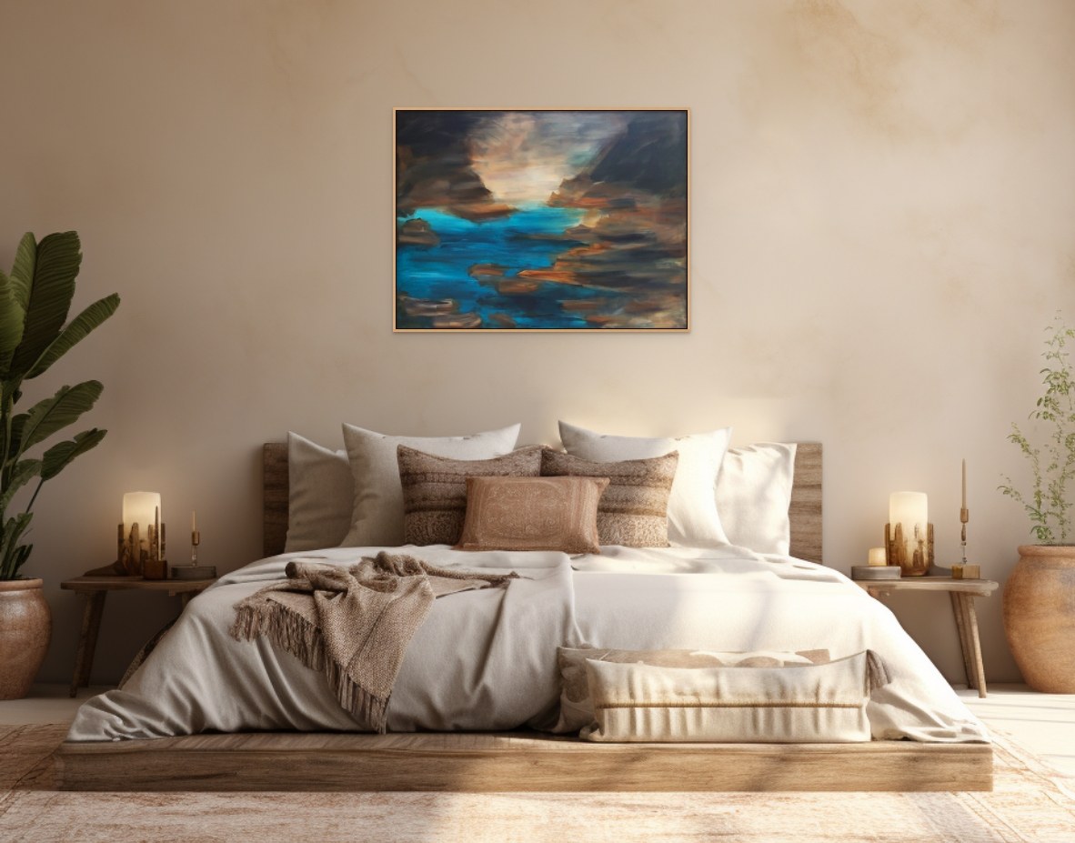 The artwork is unframed, has the artist's name on the front, is signed on the back, and comes with a signed Certificate of Authenticity. Images showing framing are indicative only. The sides are painted so framing is not required. Enjoy!