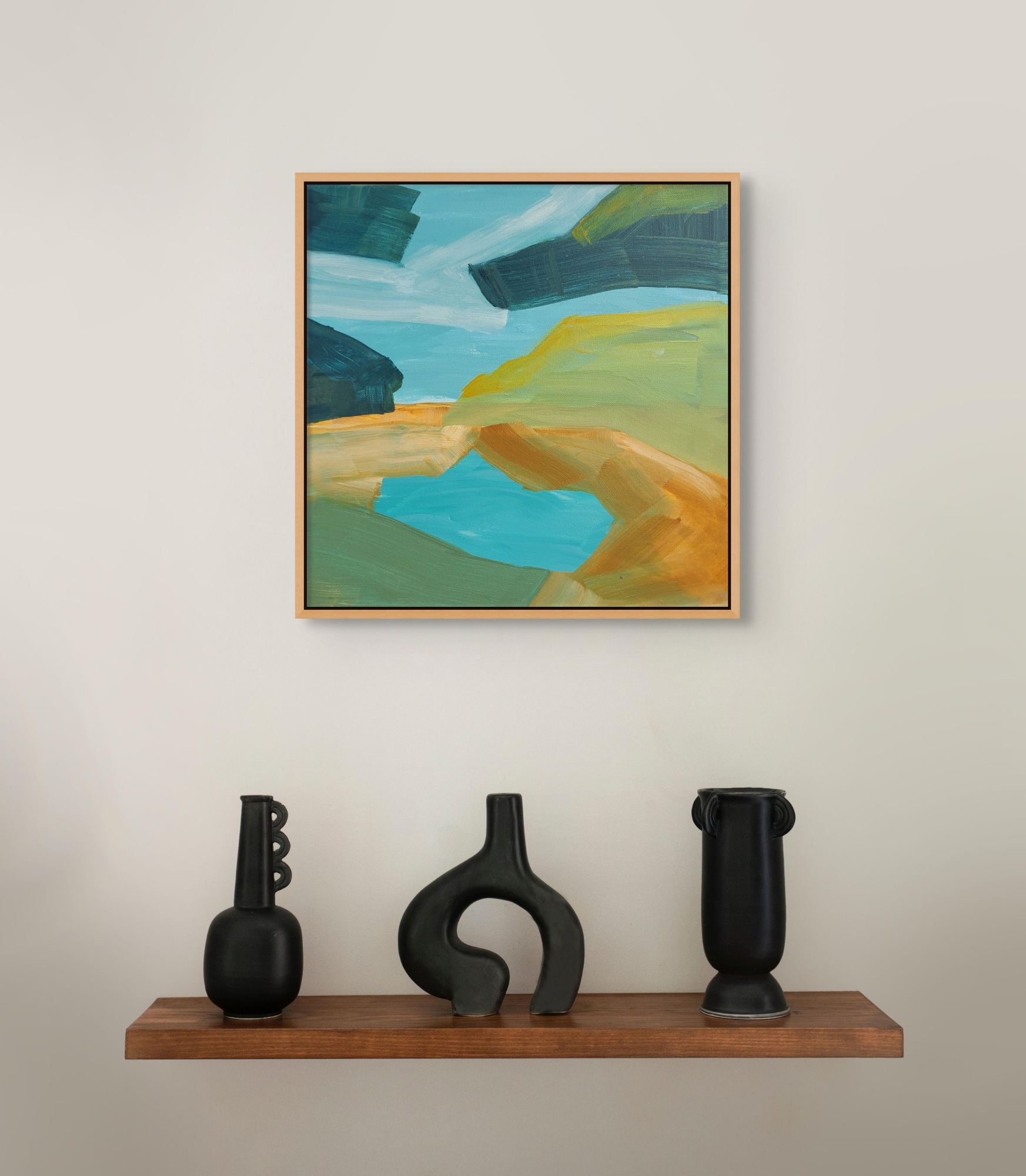 This artwork is framed in a simple natural wood frame that can be left in its natural state or stained or painted. The artist's name is on the front, it is signed and stamped on the back, and comes with a signed Certificate of Authenticity.