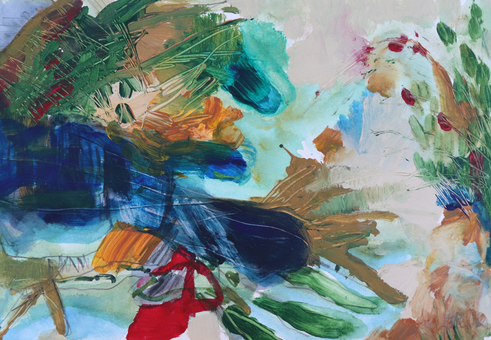 I use paper to try out colour palettes and compositions as a warm up before moving on to a canvas, these often turn into little works of art in themselves. I also love the different quality that results from working on paper. I did this work whilst sitting at the pools at Angourie on holidays, such a beautiful spot to sit and enjoy except when your children start wanting to be dare devils and jump off the rocks into the pools!